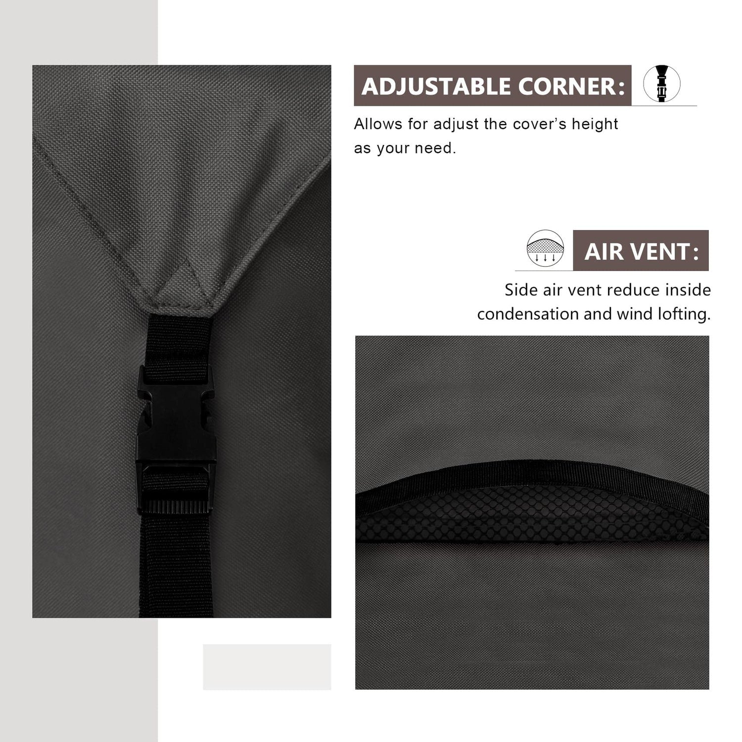 - Well-made structured air vents at two sides keep ventilation, prevent the cover from being blown away, also keep your furniture dry and in good condition.