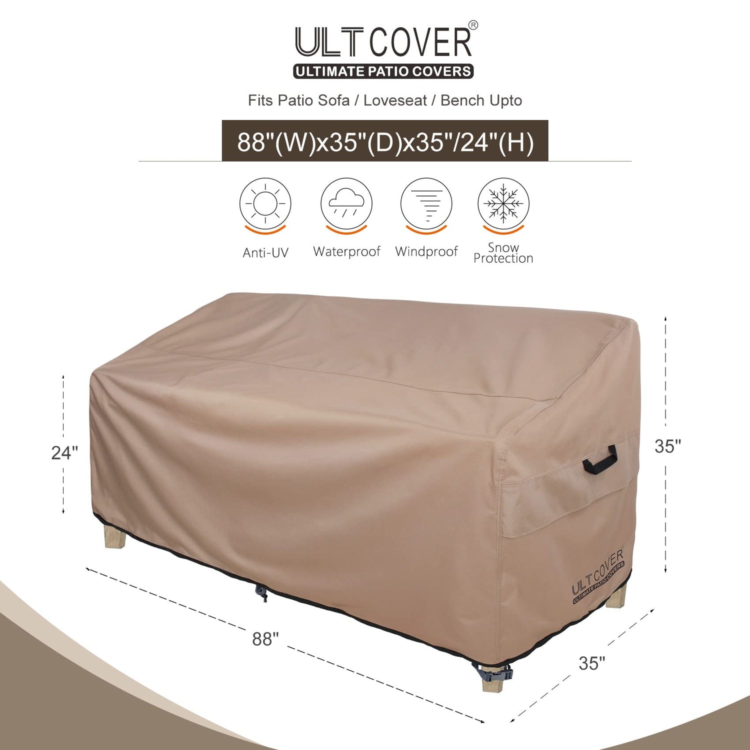 ULTCOVER Patio Furniture Sofa Cover 88W x 35D x 35H inch Waterproof Outdoor 3-Seater Couch Cover