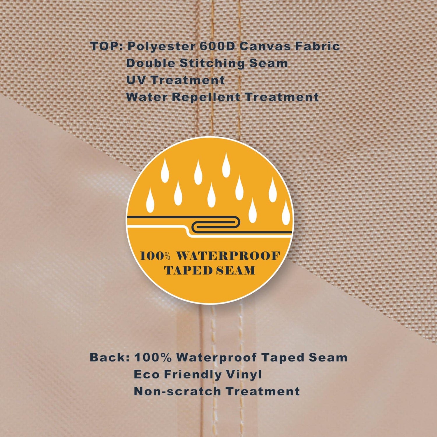 - Made of 600D polyester canvas complex with waterproof backing. Tough enough to keep rain, hail, snow, dust away.