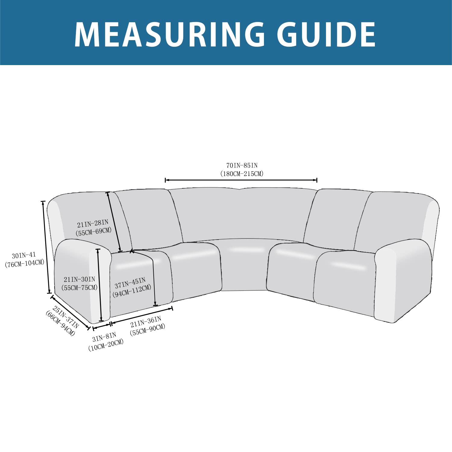 - L SHAPE RECLINER SOFA FIT: Our 7 piece , L shape recliner Sofa cover is made to fit perfect most L shape recliner Sofas , made with 7 seperate pieces including 2 arm pieces, 4 seat and backrest of cover pieces, and 1 corner piece so opening the recliner would be possible even with the sofa cover, its made to fit perfect on most L shape recliner Sofas, and there is a option to add more seats and console covers if yours is bigger then 2 seats on each side and the corner 2 seats please refer to the measurement guide in photo, please measure before purchasing