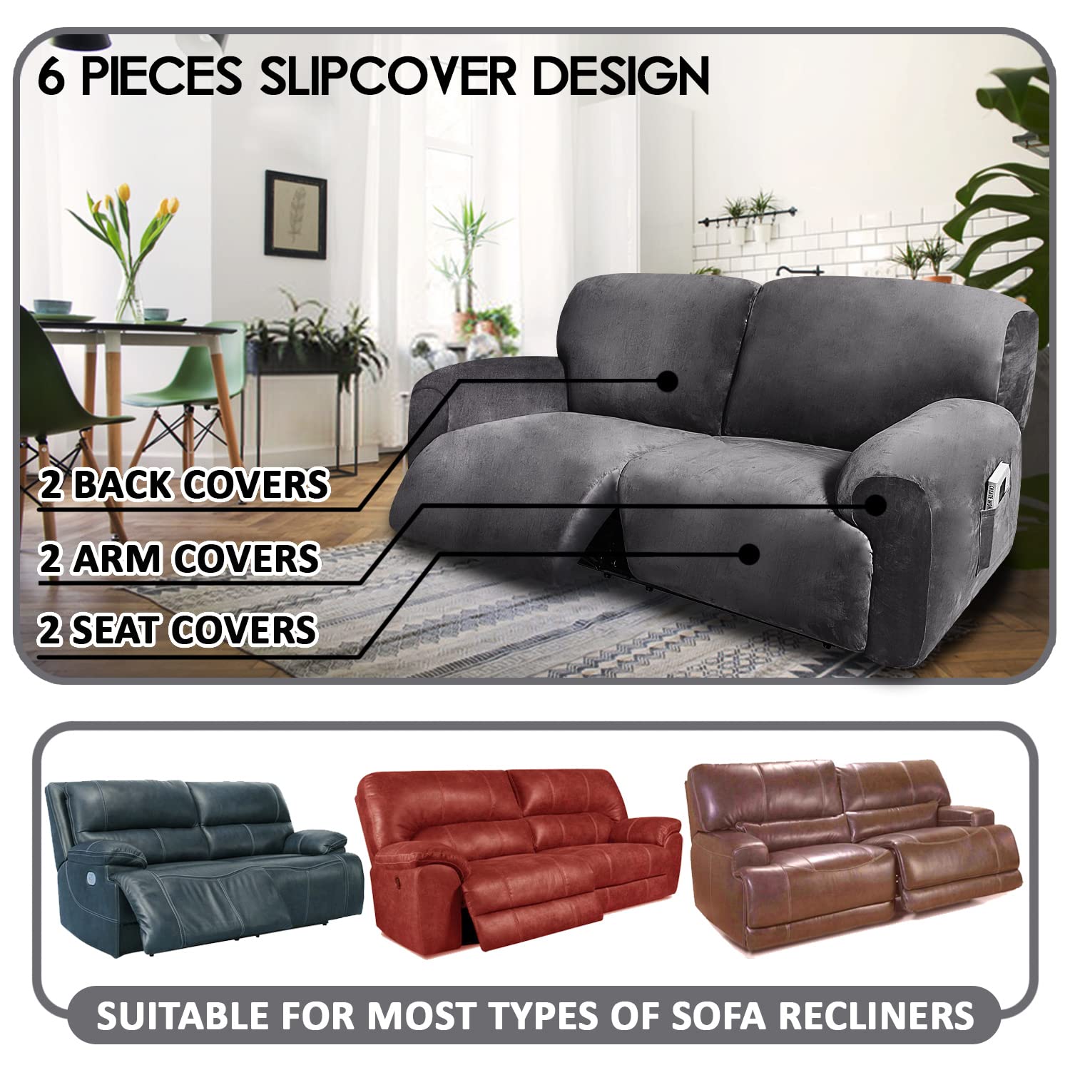 - HIGH QUALITY MATERIAL: This innovated 6 Piece love seat reclining 2 seater cover is crafted from luxurious velvet plush fabric, and is very soft, comfortable and sturdy ULTICOR'S Love seat covers are as close to custom.