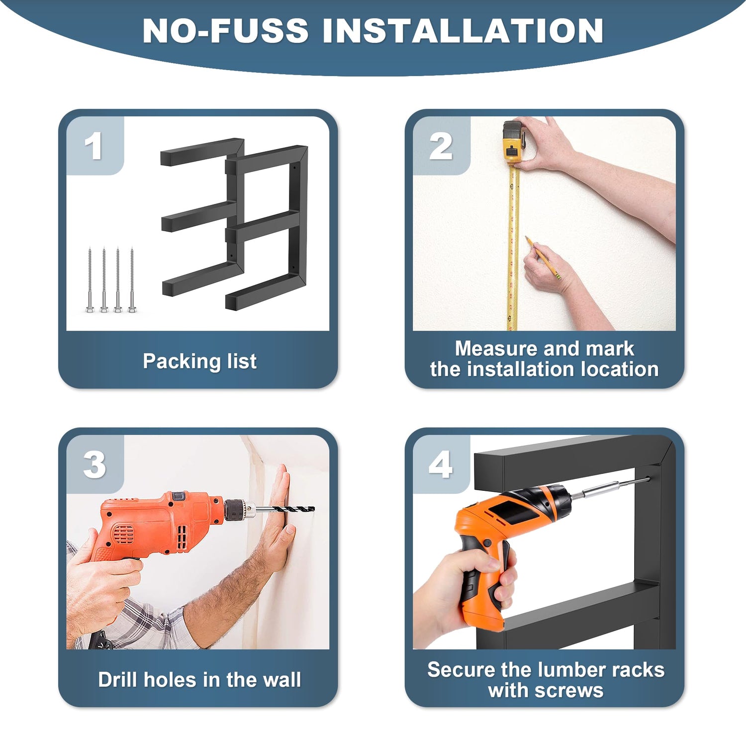 - Easy Installation - The wood storage racks arrive fully assembled. Its intuitive design ensures a hassle-free setup. This lumber storage racks comes with all necessary parts and clear, step-by-step instructions for easy installation.