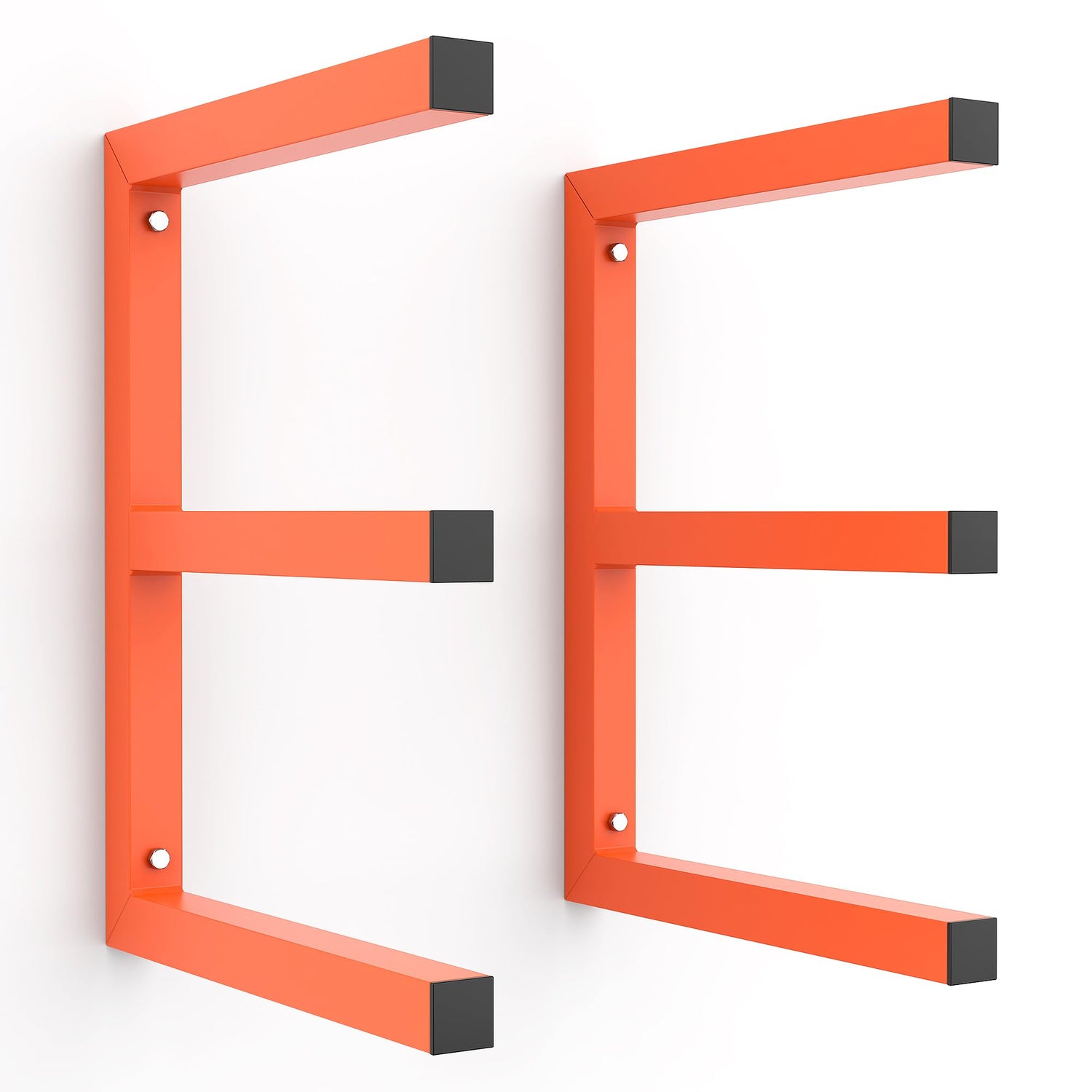 Ultrawall Lumber Storage Rack Wall Mount Wood Storage Racks, Metal Wood Organizer Racks for Shed, Workshop, Garage, Holds Up 220 LBS Per Level (Pack of 2, Orange)