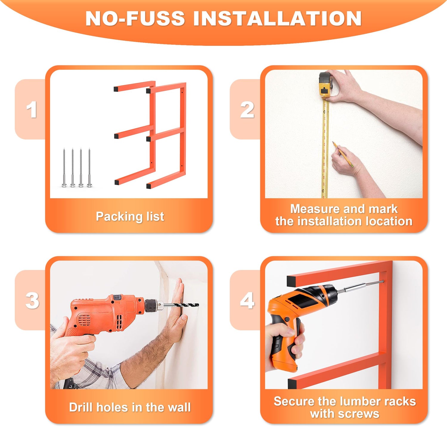 - Easy Installation - The wood storage racks arrive fully assembled. This lumber storage racks comes with all necessary parts and clear, step-by-step instructions for easy installation. Its intuitive design ensures a hassle-free setup, getting your organizer ready for use in no time.