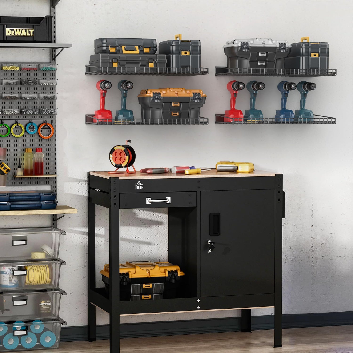 - Heavy-Duty Construction: Garage Shelving is constructed with high-quality materials, ensuring durability and stability. The heavy-duty design can bear a load capacity of 100 lbs for each wall shelf, making them ideal for storing bulky items such as power tools, paint cans, or gardening supplies