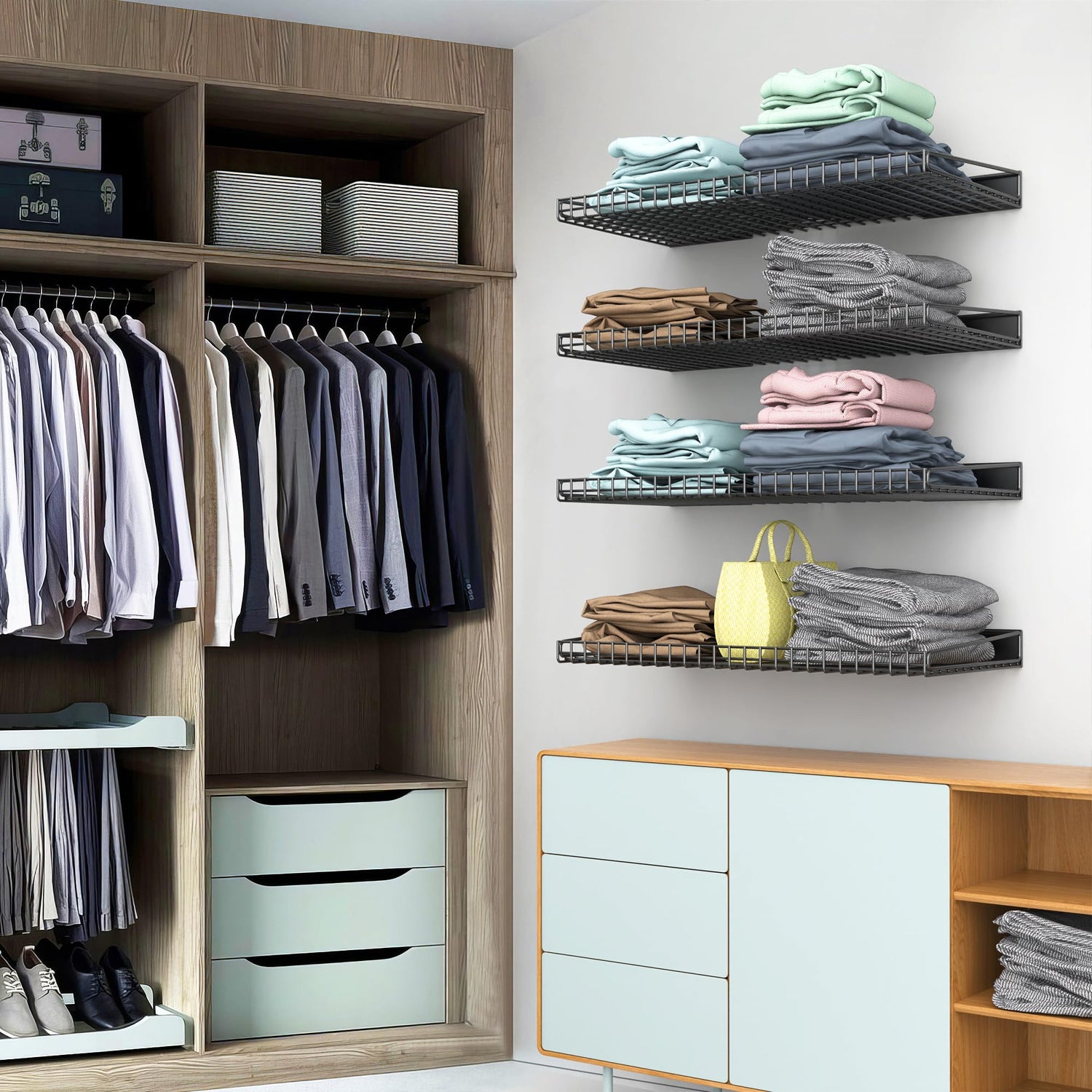 Ultrawall Wall Mounted Storage Shelf for Garage, 4 Pack Metal Shelf Rack, Heavy-Duty Wall Organizer Shelves Suitable for Shop, Shed, Garage 23.5inch x 12inch(Black)