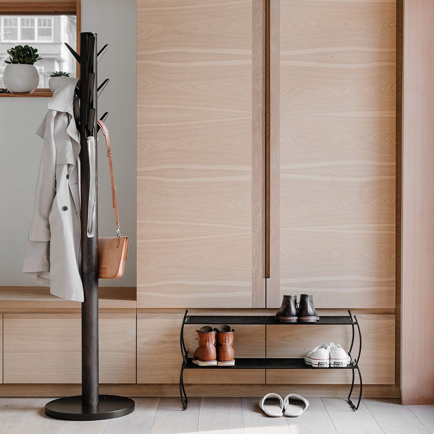 - Ample Storage: With a variety of hooks to hang bags, jackets, accessories, and more, Flapper is compact in size but can hold your everyday essentials