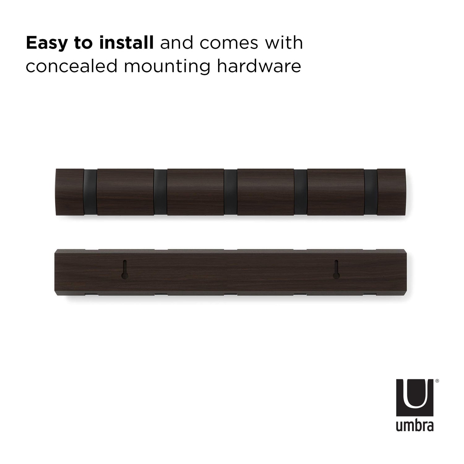 - EASY TO SET UP & USE: Designed by David Quan for Umbra, Flip 5-Hook Wall Mounted Coat Rack measures 20 x 2.75 x 1.5 inches and comes complete with simple step-by-step installation instructions and all the necessary hardware to easily mount it to your wall in just minutes
