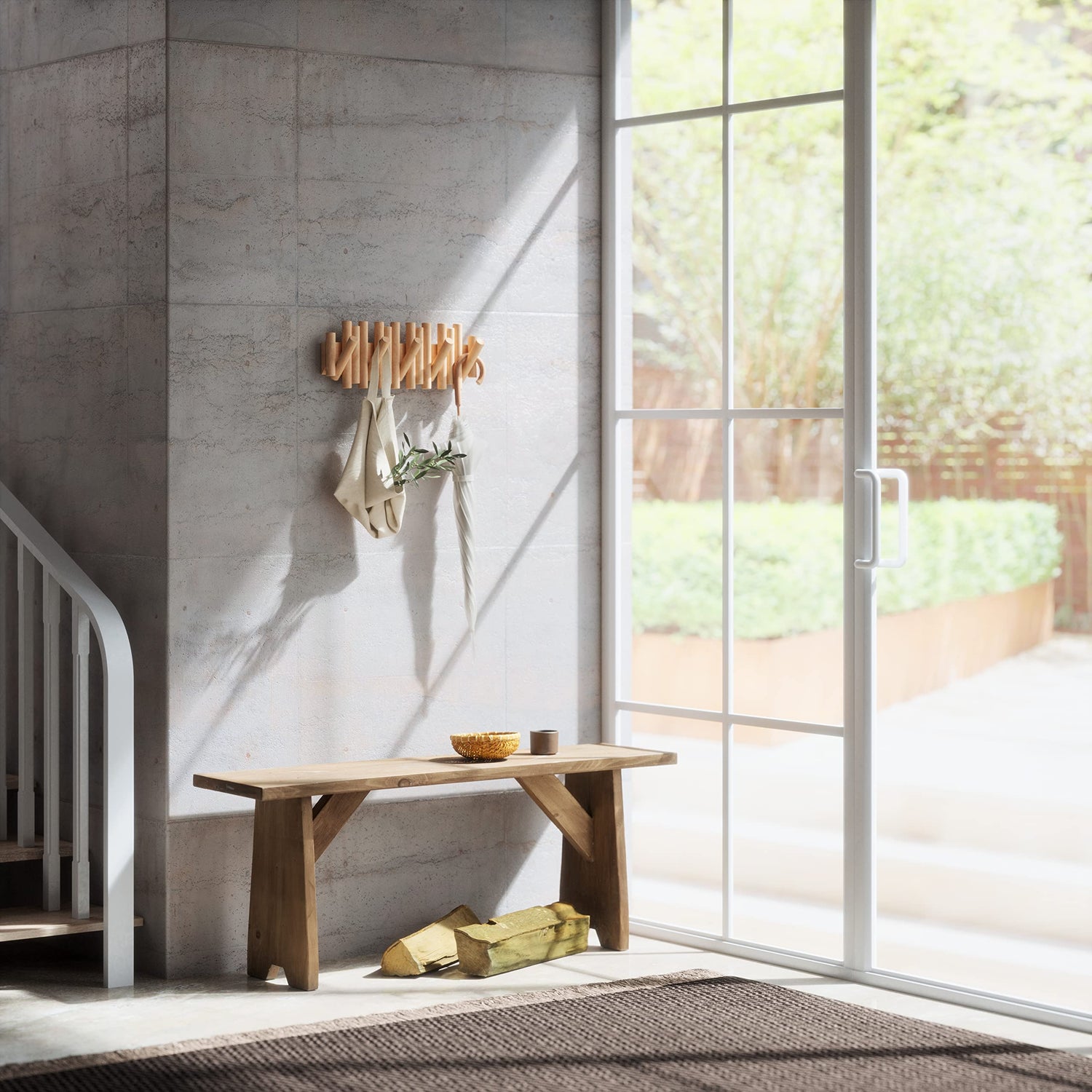 Umbra Picket 5 Hooks, Wall-Mounted Rail, Doubles as Art, Beveled Pine Wood Dowels, Natural Finish