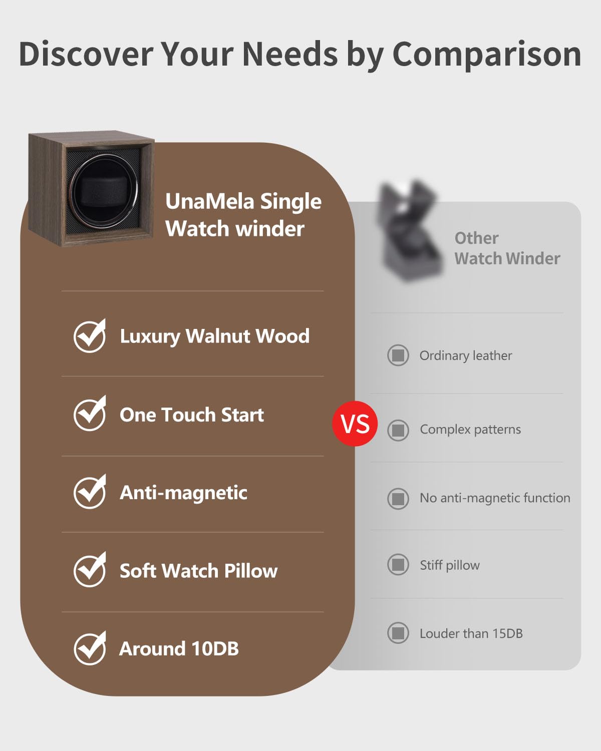 UnaMela Watch Winder for Automatic Watches: Automatic Single Watch Winder Box in Walnut Wood for Men and Women USB Powered