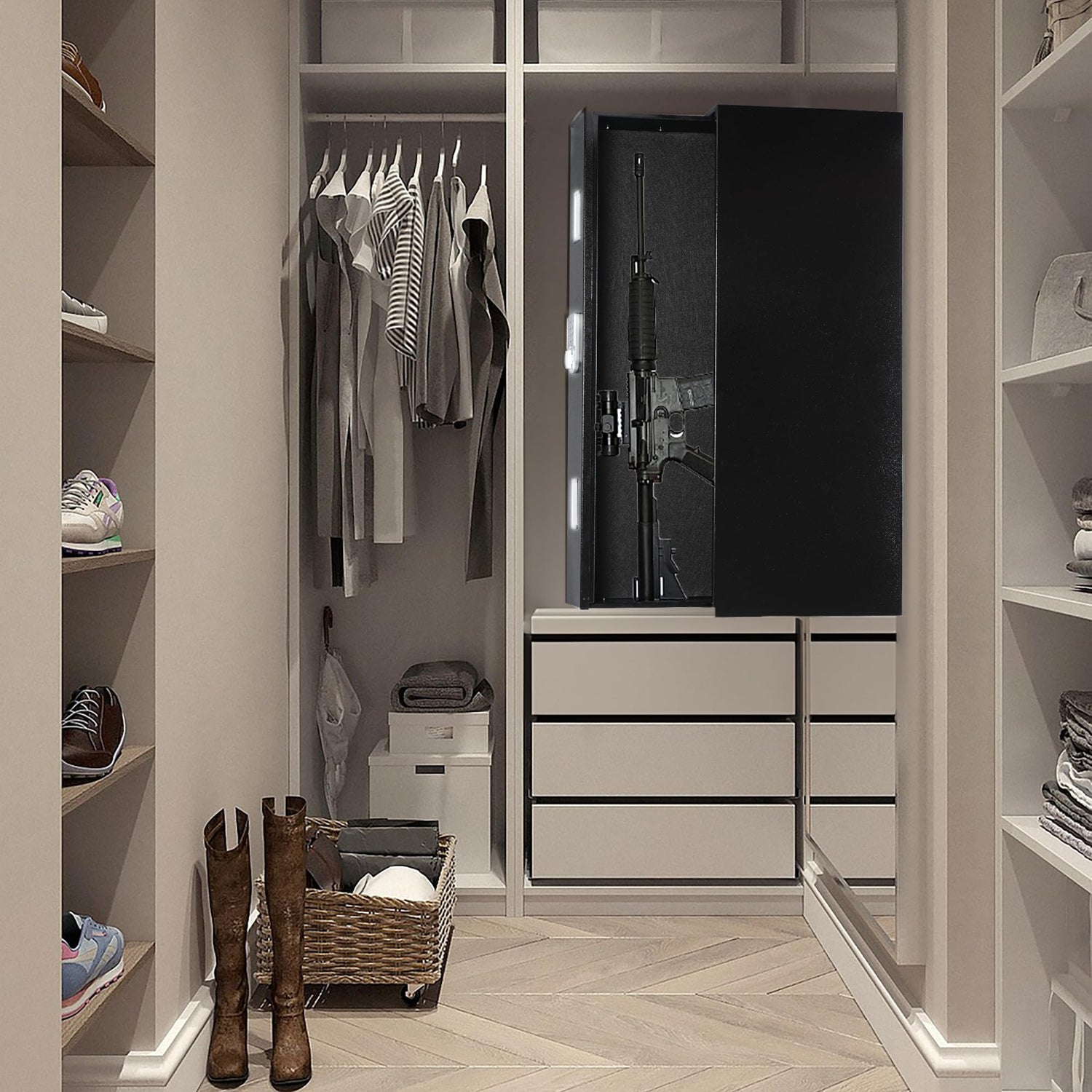 - Spacious Hidden Safe: Measuring 43.25'' (L) x 13.75'' (W) x 5.5'' (H) and weighing 43 lbs, our hidden gun storage shelf is ideal for storing various types of firearms. It can also function as a home hidden safe, perfect for storing jewelry and documents.