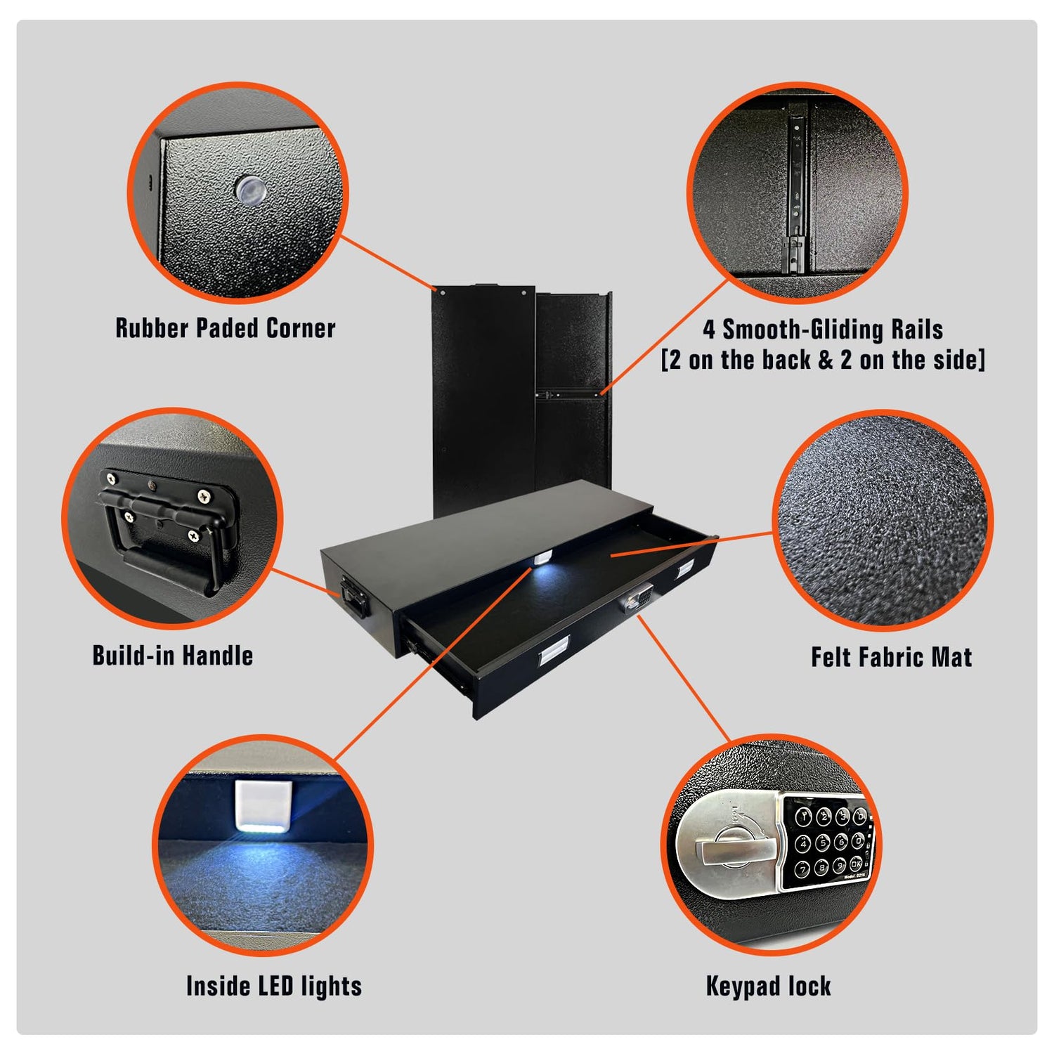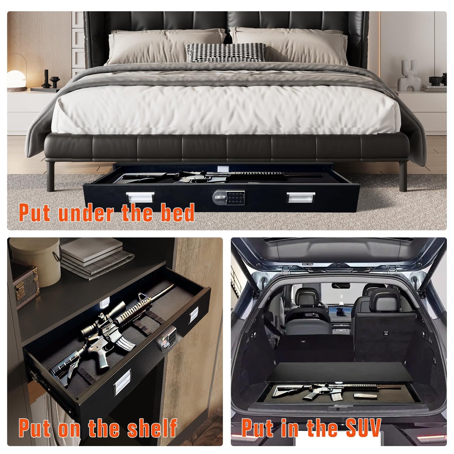 - Upgraded Gun Cabinet, No Assembly Required: Our under bed gun safe arrives fully assembled, including the drawer, handles, and keypad lock. It requires no assembly upon delivery, ensuring it's ready to securely store your valuables such as gun,documents, electronics, and other personal items.