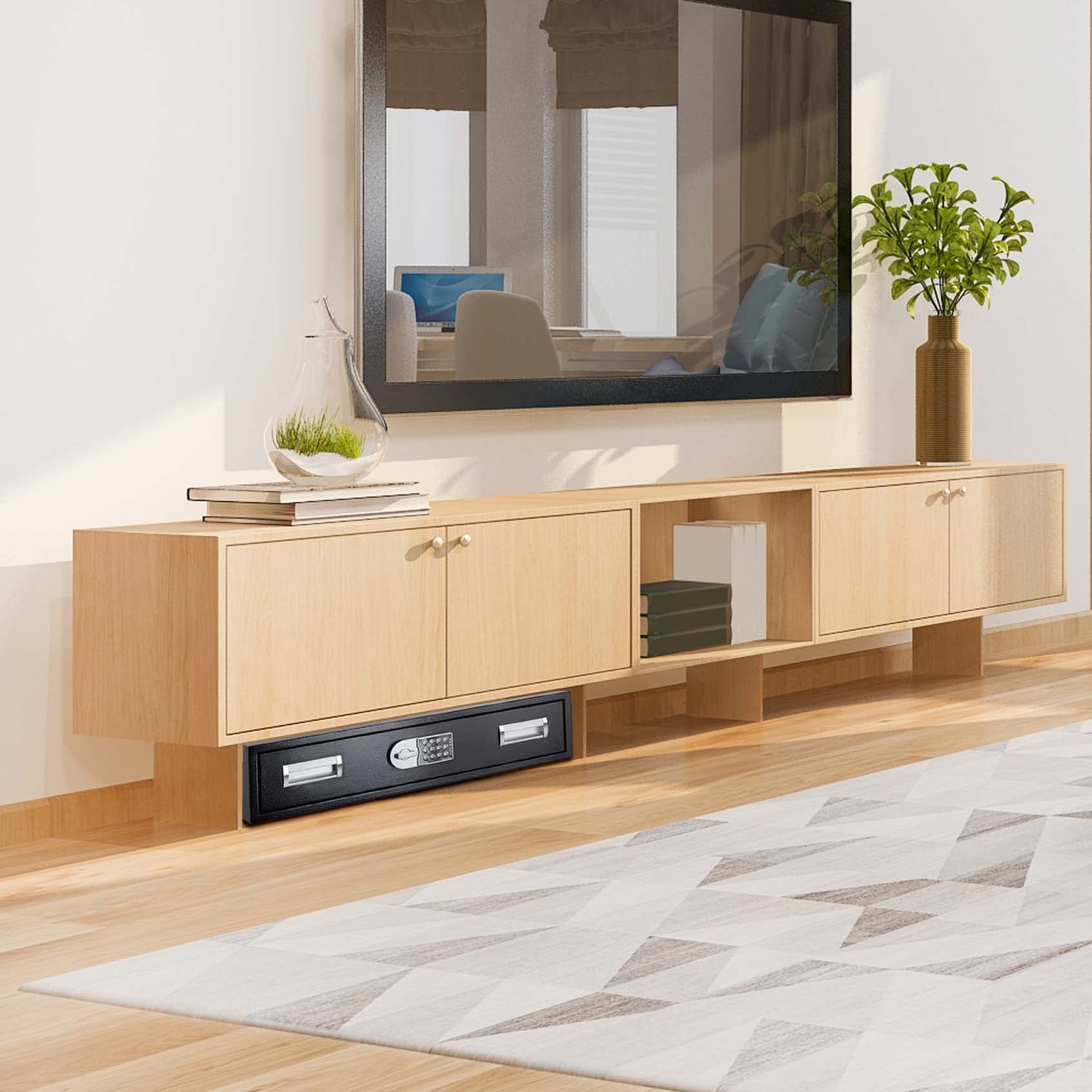 - ๐ LARGE HIDDEN SAFE: Measuring at 26'' (L) x 20.5'' (W) x 6'' (H) and weighing at 45 lbs, our hidden gun storage shelf is great for storing shotgun, pistol, ammunition, and magazines. If you prefer using it as a regular home hidden safe, this floor safe is ideal for storing jewelry and documents too.