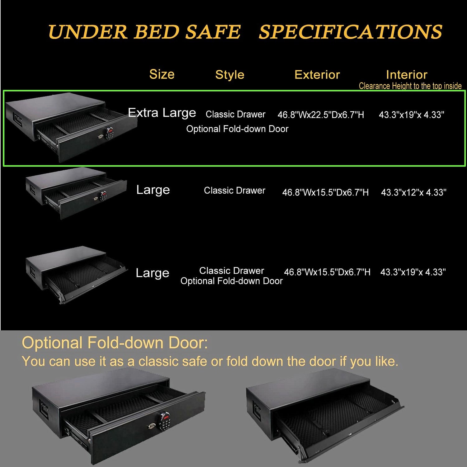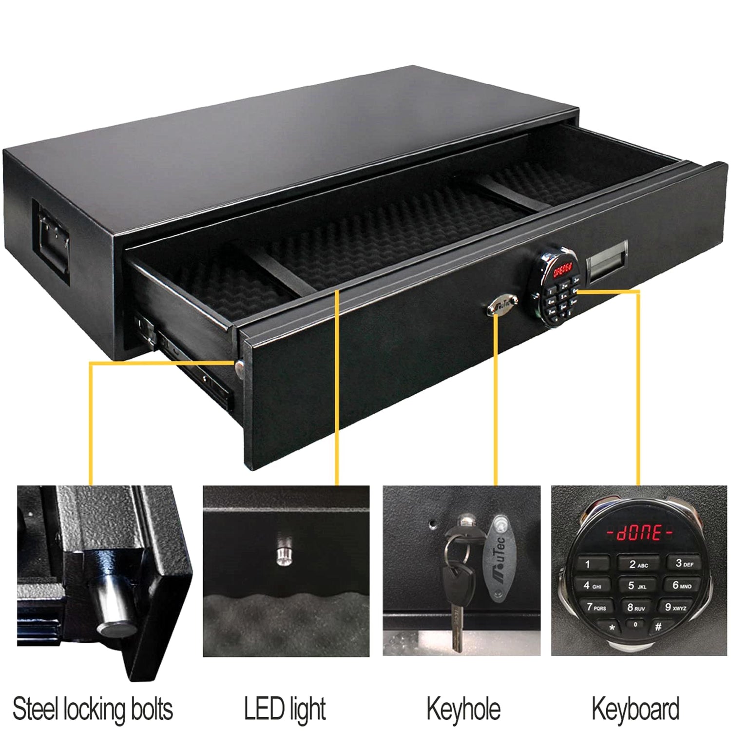 - ✅Large slide-out drawer accommodates firearms, jewelry, documents, and more. It can be used under other types of large furniture, under bed, in a closet or in vehicle out of site. Keeps children and unauthorized users from gaining access for secure storage and theft prevention.