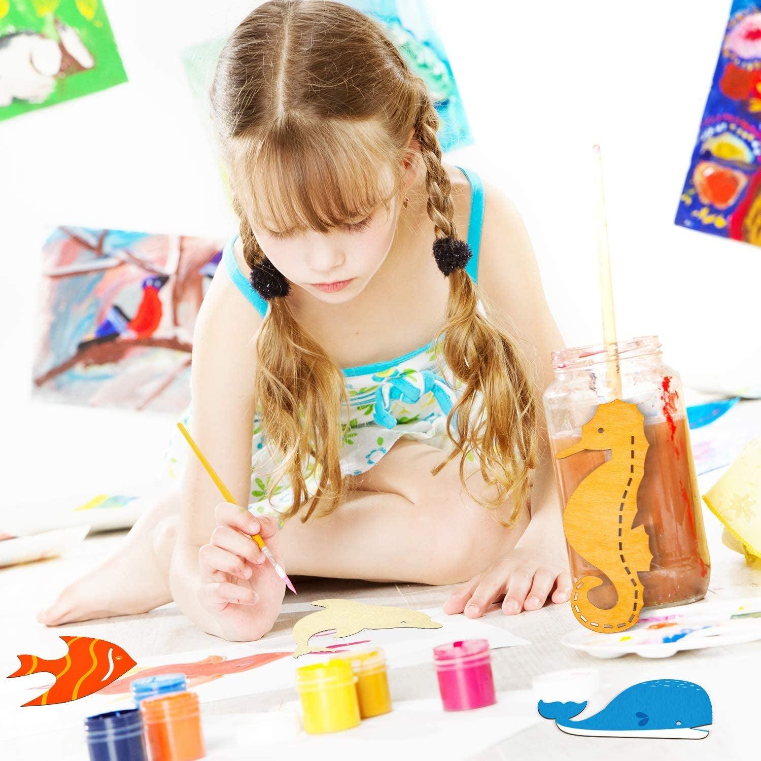 Unfinished Wood Cutouts Ocean Animals Wooden Paint Crafts Home Decor Ornament DIY Octopus, Shark, Whale, Dolphin, Seahorse, Fish Shape (28 Pieces)