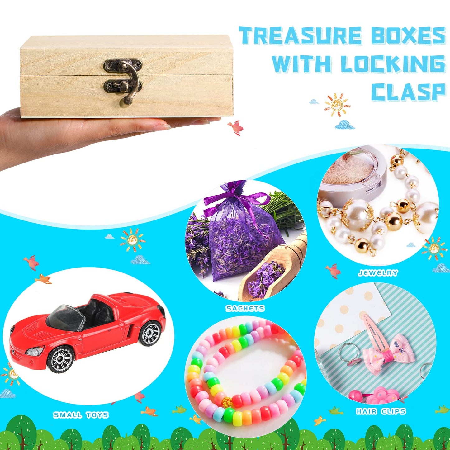 - Wide Application: the wooden jewelry box can be applied to store toys, gifts, roses, dried flowers and more, can also be applied to hold tea bags, photos, rings, watches, jewelry, accessories and more, to keep your desk clean
