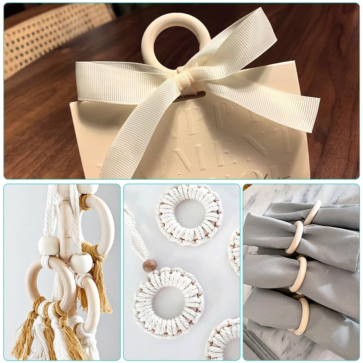 The macrame wooden rings are suitable for various craft projects, ideal for a variety of crafts, DIY jewelry making, painted decorations, curtain rings, napkin rings, etc.