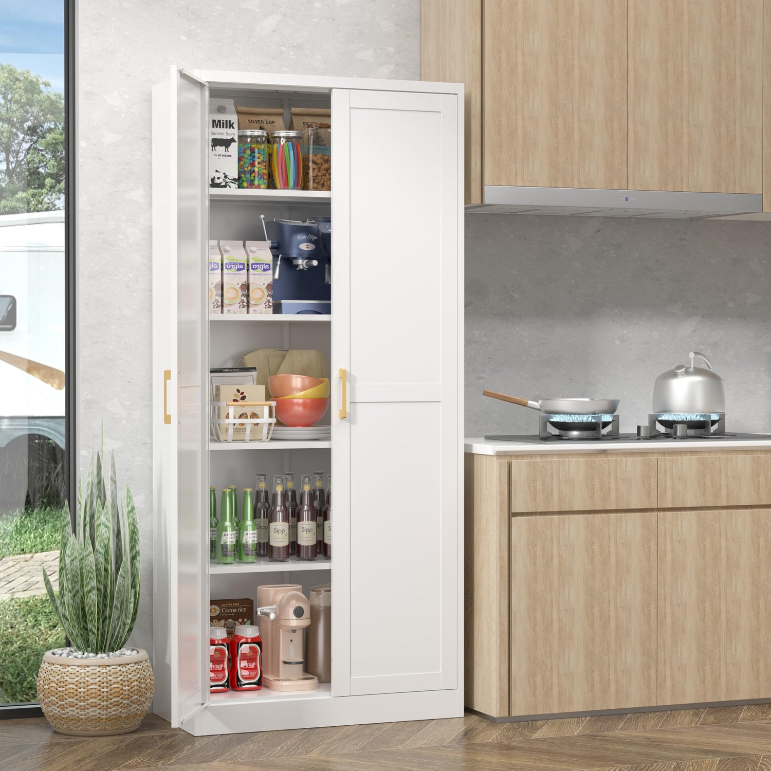 UNICOLY 71" White Storage Cabinet, Metal Pantry Cabinet, Kitchen Pantry Storage Cabinet with Doors and 4 Shelves, Cabinet for Laundry Room, Living Room, Bathroom, Dinning Room.