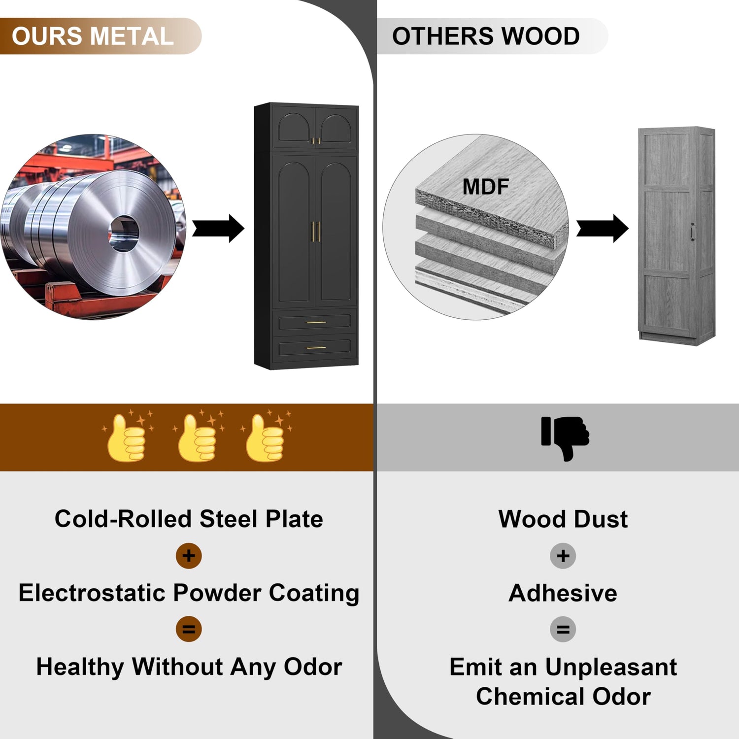 - Safe Anti Tipping Design: The back panel of the metal wardrobe is equipped with 2 holes, you can use screws to fix the metal storage cabinet to the wall, unlike other cabinets. No dangerous tipping even if there are curious kids around. Ensure maximum stability and safety