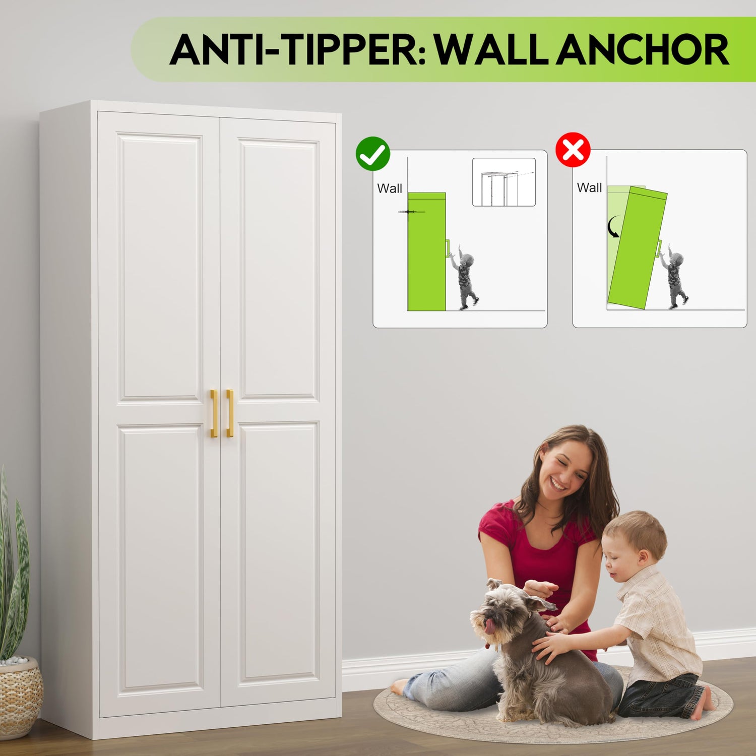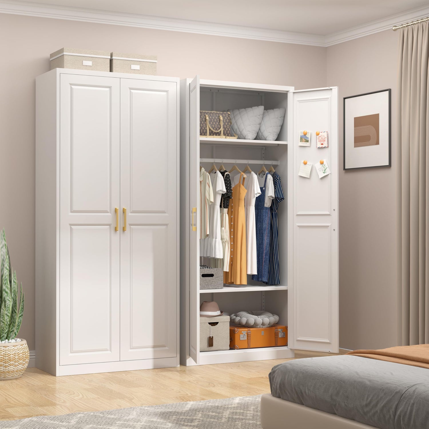 UNICOLY Armoire Wardrobe Closet with Doors, 71'' Wardrobe Cabinet with Hanging Rod, Metal Closet with 2 Adjustable Shelves for Bedroom School, Employee, Gym, Armarios De Ropa para Dormitorio, White