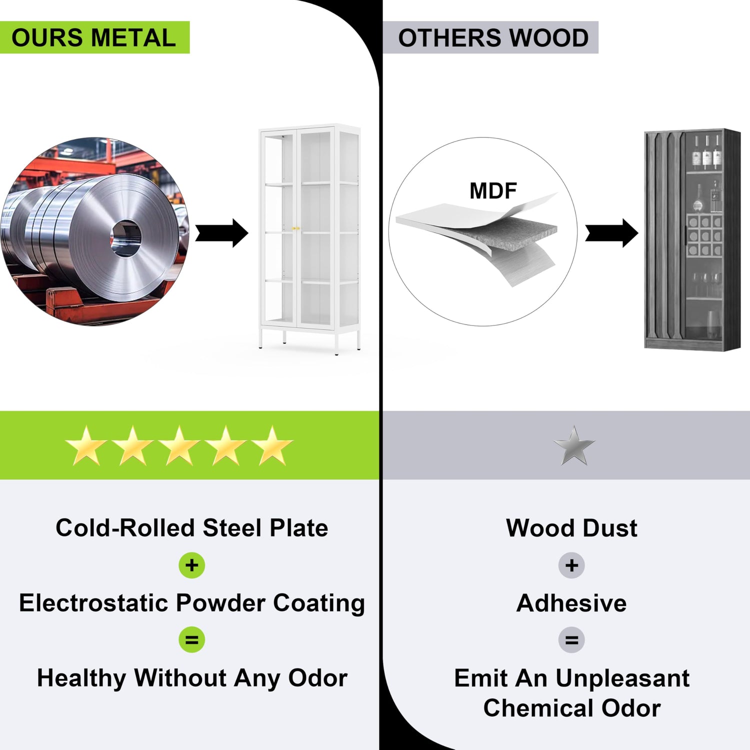 - MATERIAL: The display cabinet is crafted from cold-rolled steel plate(SPCC)and tempered glass, ensuring it is sturdy. Steel plates are covered with an environmentally friendly powder coating. The UNICOLY display case is corrosion-resistant,easy to clean, and odourless.