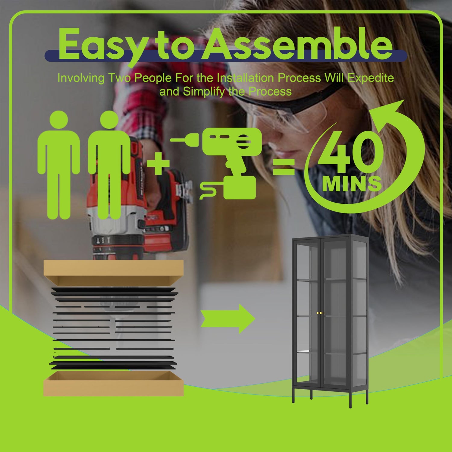 - SECURITY PRACTICAL DESIGN: The curio cabinet can be mounted to the wall, prevent tipping. Glass cabinet display case is crafted from tempered glass. Even if accidentally damaged, there will be no sharp glass fragments scattered