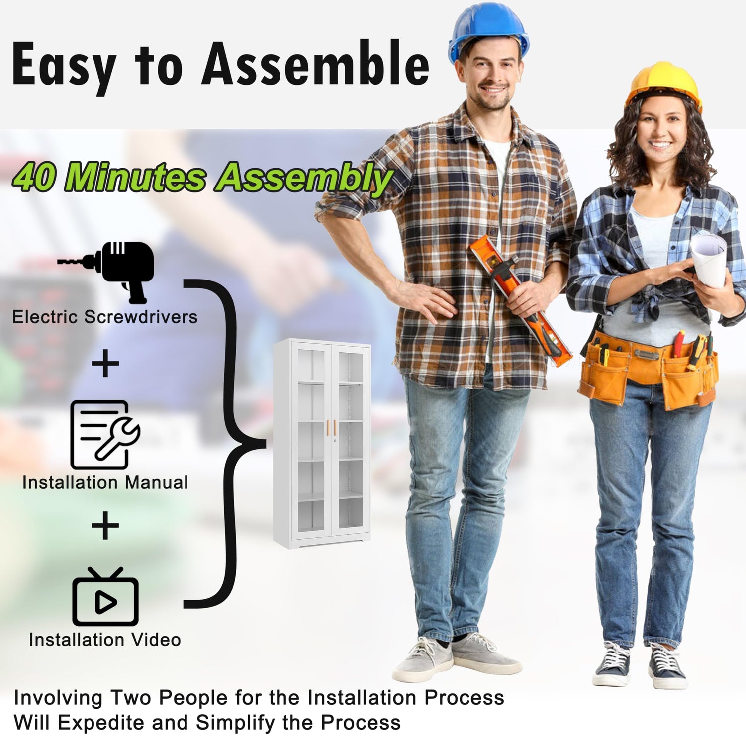 - EASY ASSEMBLING: Bookcase with glass doors measures 71"H x 32"W x 16"D. We recommend that two adults work together to install the metal cabinet. Using an electric screwdriver can make the installation process more efficient.