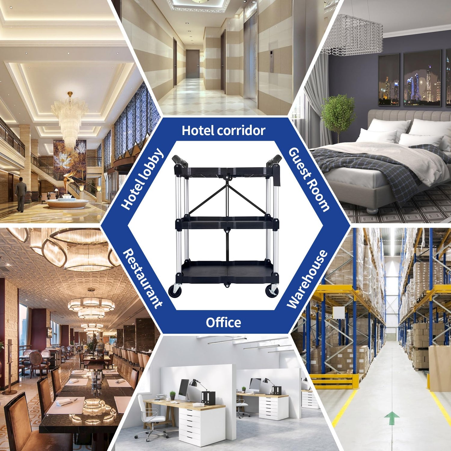 • Versatile Use: The robust structure and 3-tier design of this cart facilitate its use in various settings such as factories, workshops, restaurants, offices, and garages. It's a versatile solution for carrying different items efficiently
