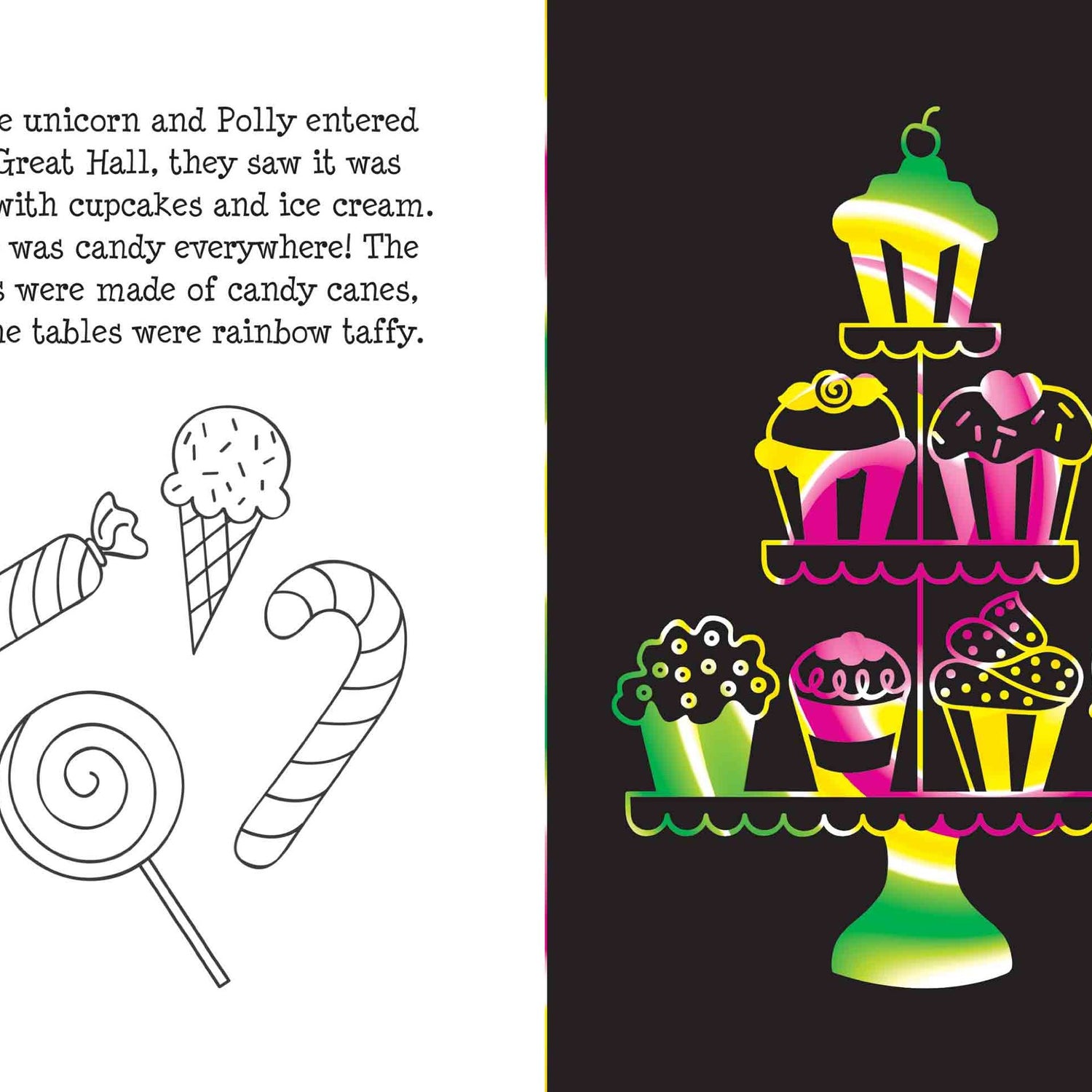 Details: Join a girl named Polly and her unicorn friend on a magical journey to an enchanted castle! Use your stylus pen like a magic wand, tracing the unicorn, friends, and all the wonders along the way, and discover the secret colors -- silver, gold, and rainbow -- beneath the black-coated pages!