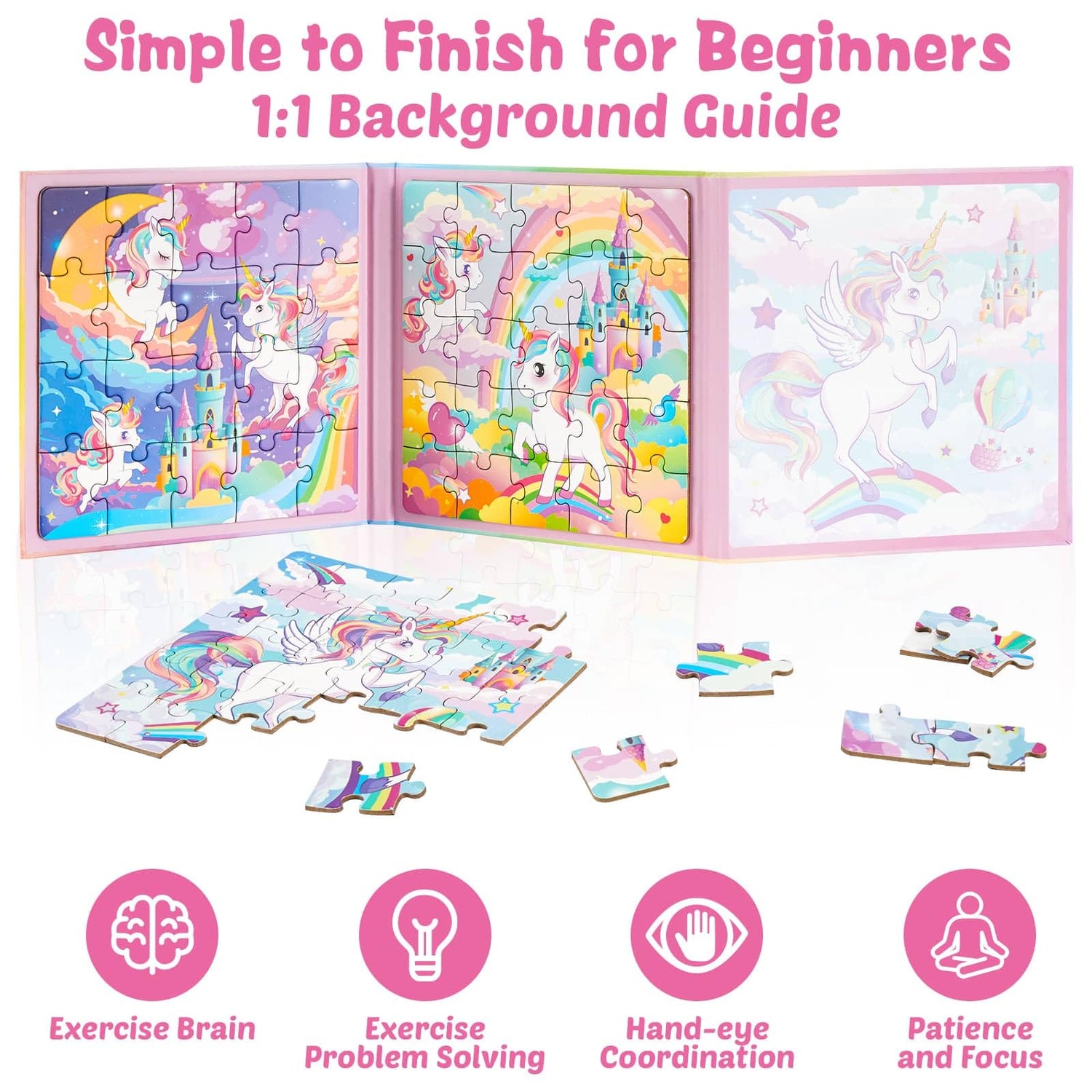 - 3 IN 1 CHILDREN'S PUZZLE: This unicorn magnetic puzzle set includes 20, 25, and 30 pieces, offering varying difficulty levels. The cute designs engage kids, providing a sense of accomplishment when completed