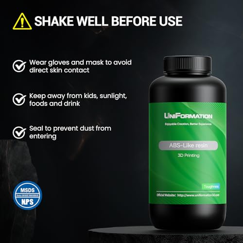 - 【High Hardness and Toughness with a Decent of Flexibility】Designed with hardness, toughness and flexibility in mind, Uniformation ABS-Like resin showcases the high impact and wear resistance, ensuring that 3d resin printing maintain their integrity, dimension stability and return to their original shape after bending.