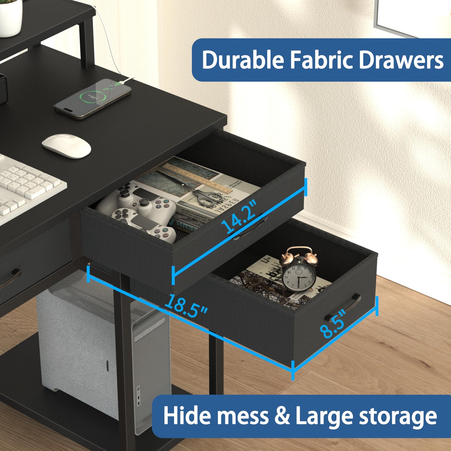 - 【Spacious Desk with Drawers】 5 fabric drawers provide adequate storage space, perfect for storing office documents and personal belongings. You will have a clean and organized desktop after owing it. Small desk with drawers is shockingly deep, very sturdy, and all around clever design that prioritizes space and practicality.
