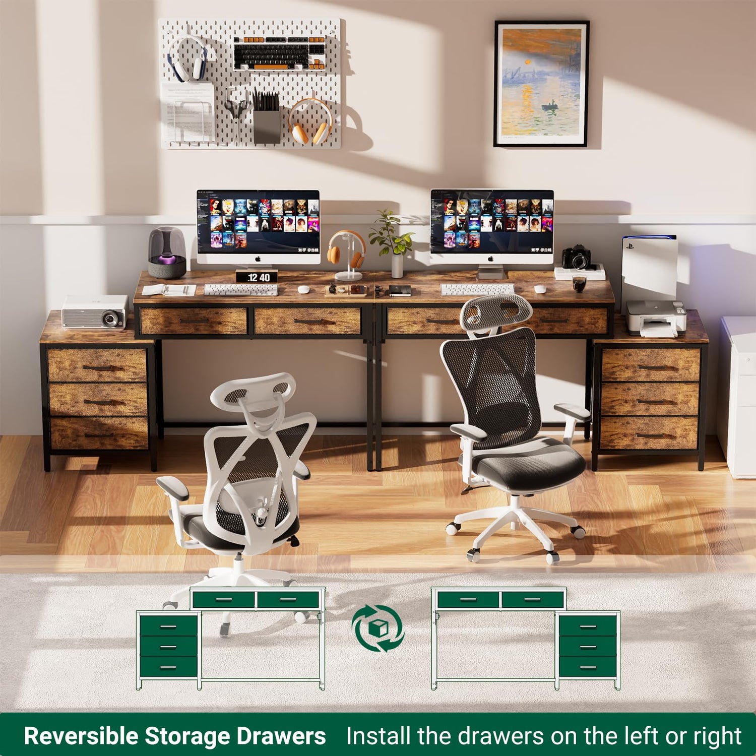 - 【REVERSIBLE AND COMFORTABLE】 With reversible design, you are able to put it together with the drawers located on the right or left side, which are very convenient and handy as well. The roomy drawers provides you a fully functional workplace for whatever project you are working on and makes your life more comfortable.