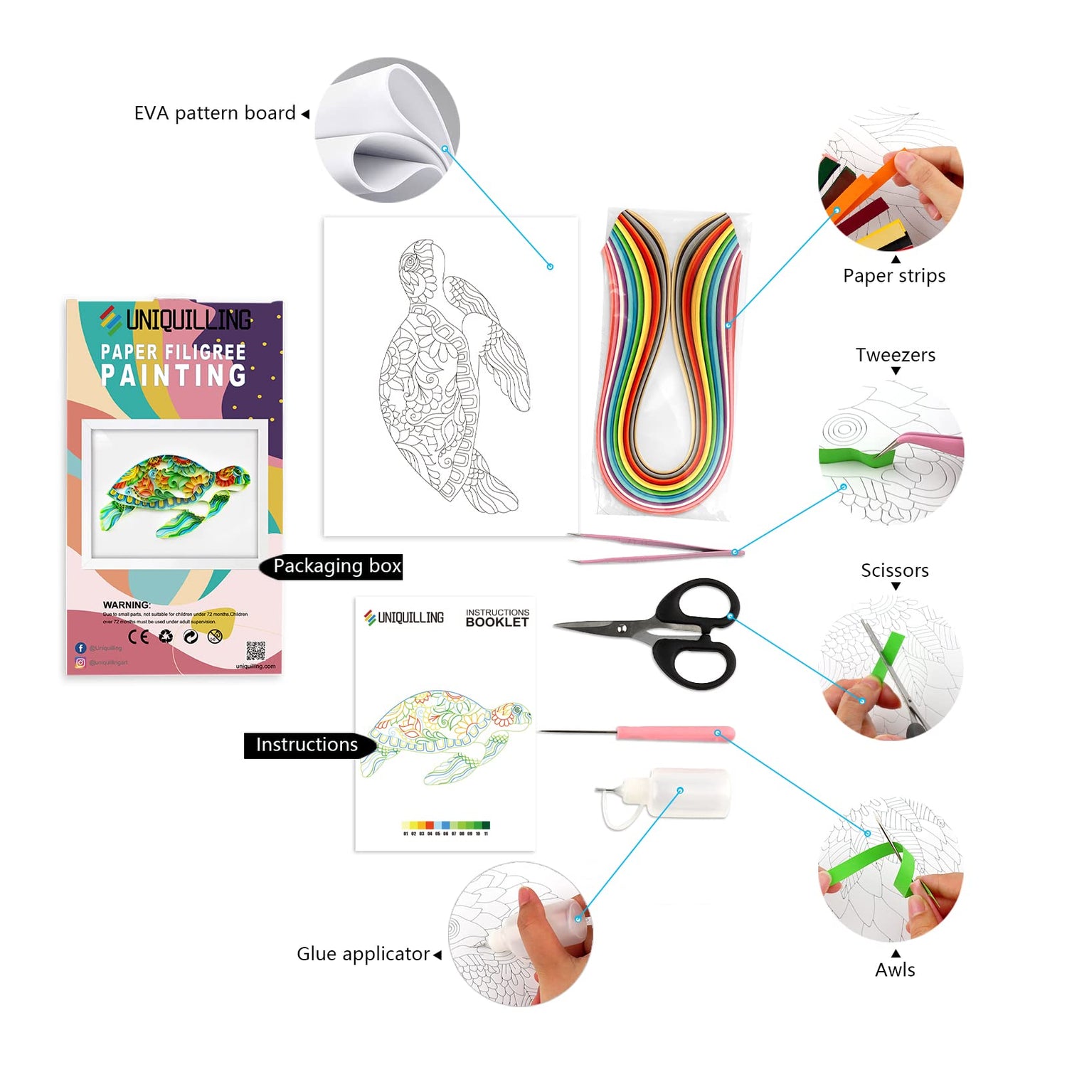 Uniquilling Quilling Kit, Paper Quilling Kits, 8 * 10-in Green Turtle Paper Filigree Kits with Quilling Tools& Using Manual, DIY Quilling Artwork Modern Wall Art for Living Room