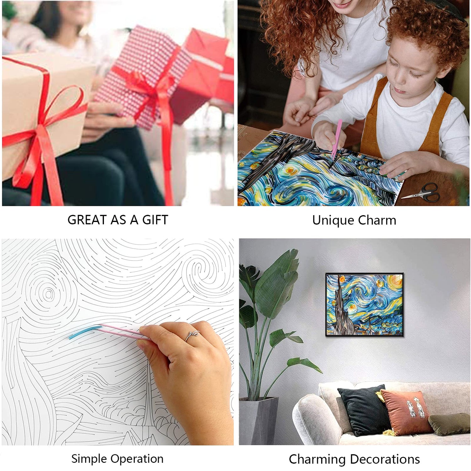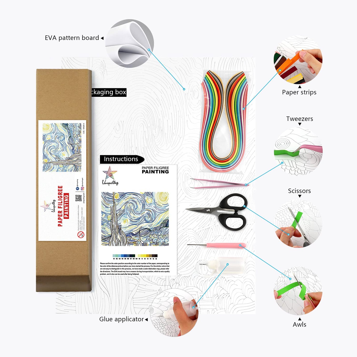 Uniquilling Quilling Kits Paper Quilling Kit for Adults Beginner, DIY Kits for Adults Paper Filigree Painting Kits, Modern Wall Art for Living Room, 16 * 20in Starry Night- Basic