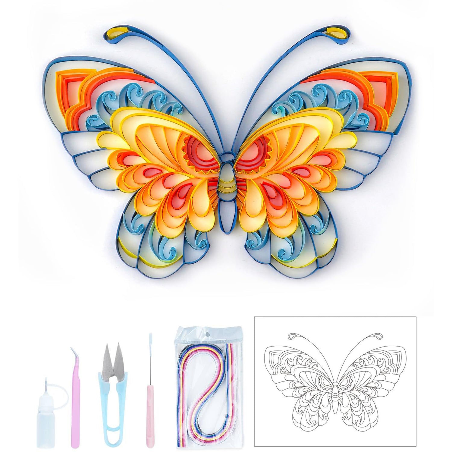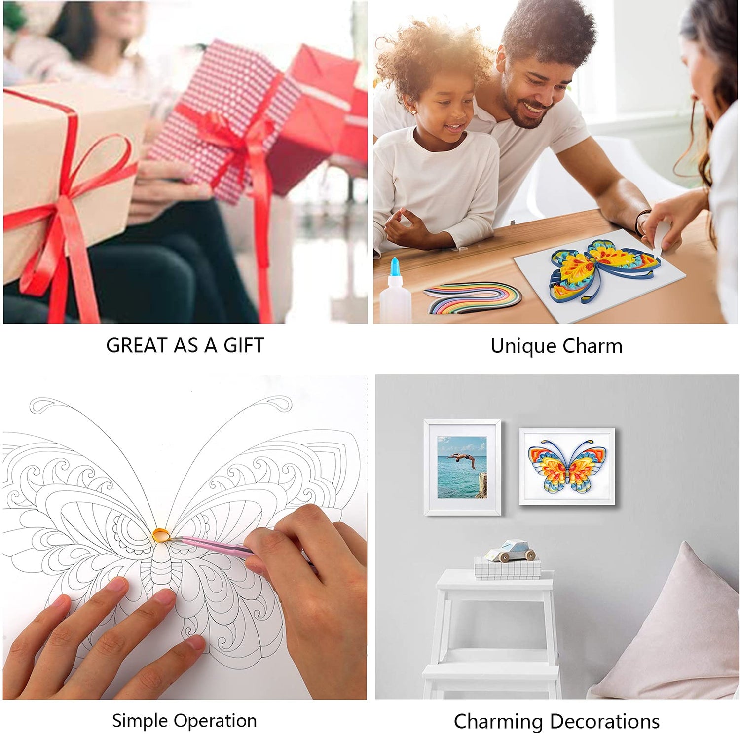 Uniquilling Quilling Paper Quilling Kit for Adults Beginner, 8 * 10-inch Blue Butterfly, Exquisite DIY Paper Filigree Painting Kits Quilling Tools, Home Room Wall Art Decor Best Gifts(Basic)