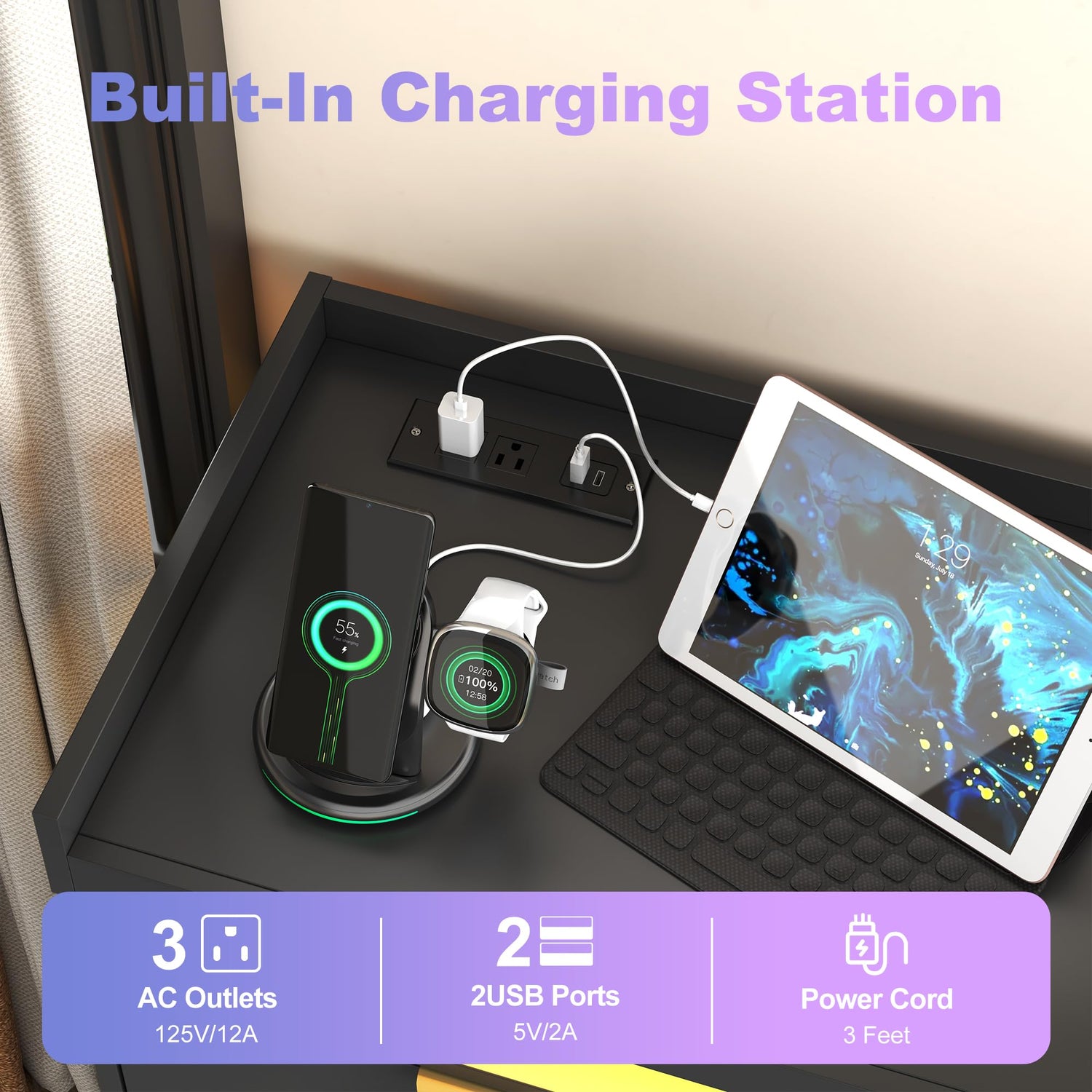 - 【Chest of Drawers with Charging Station】No more hunting for a spot to charge devices! Our bedroom dresser features a power outlet, which creates convenience for device charging. It has 2 AC outlets and 2 USB ports, so you can charge your laptop, mobile phone, table lamp, hairdryer, and other small appliances. Easy to use within your arms' reach.