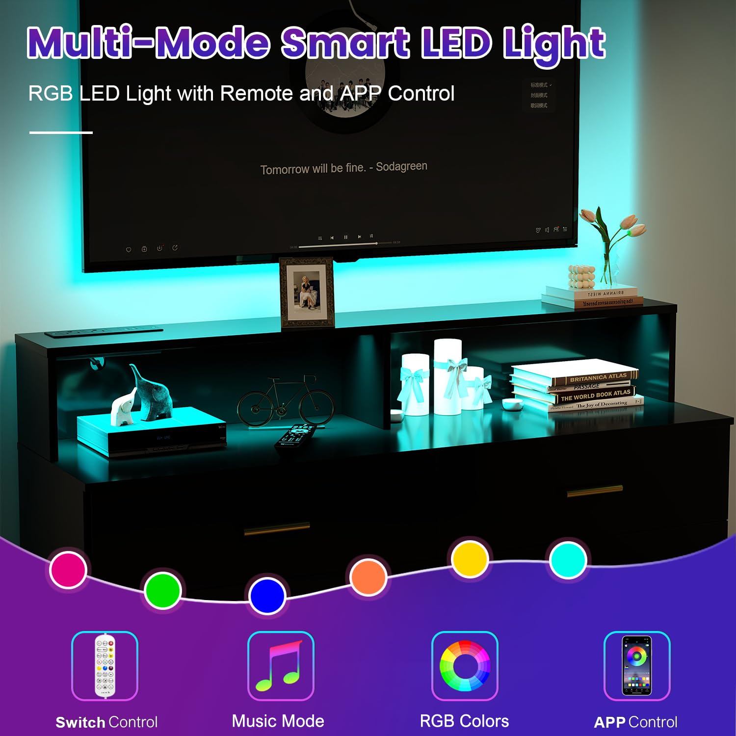 - Dresser with RGB LED Lights -- This 6 Drawer Double Dresser comes with beautiful multi-color RGB led light.the colors, and brightness can be freely adjusted through the button and App, making your furniture more diverse and stylish. Moreover, you can also set the music, the light colors can be changed with the rhythm of the songs, to discover more wonderfully!
