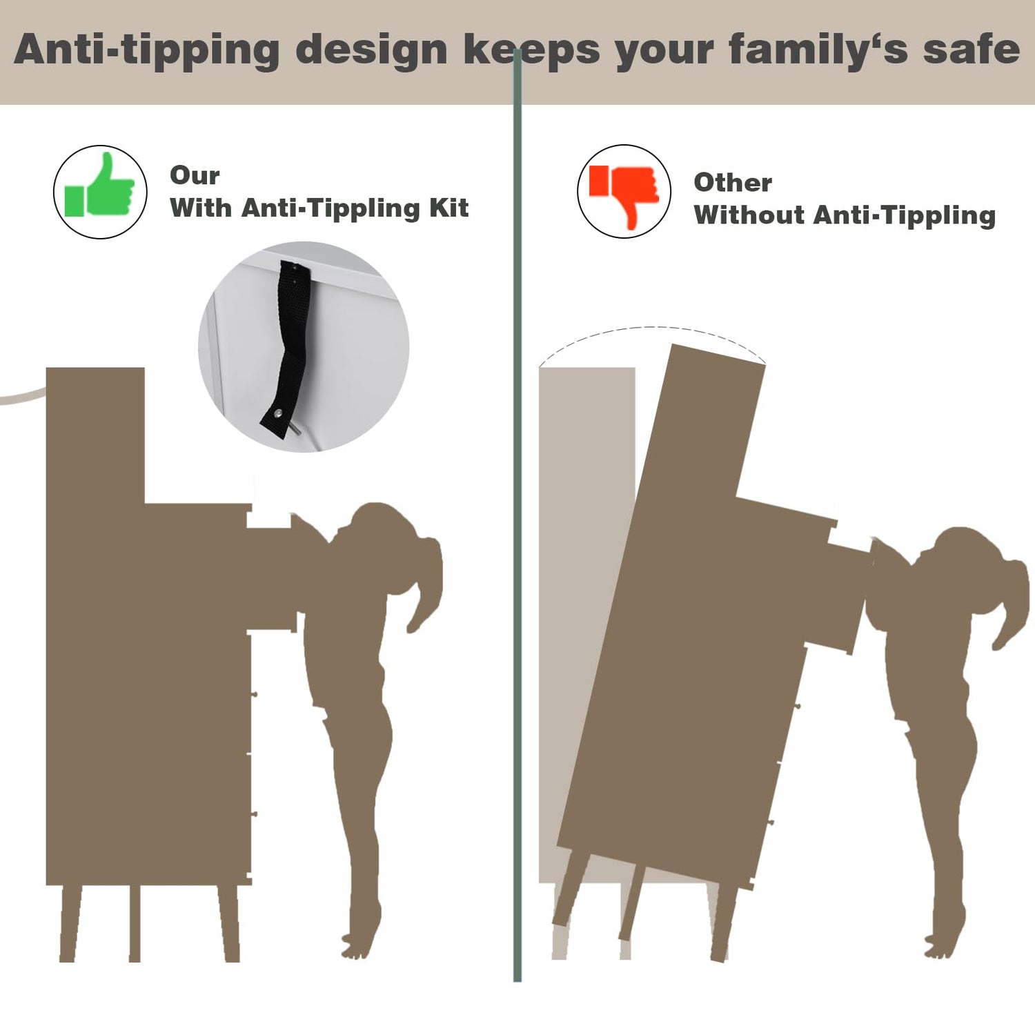 - Sturdy Construction -- The wood dresser made of a high-quality durable MDF wooden frame, scratch-resistant and water-resistant. The 6 drawers slide easily on ball bearings. To further enhance safety, the drawer storage comes with an anti-tip device, preventing from climbing and toppling the dresser.