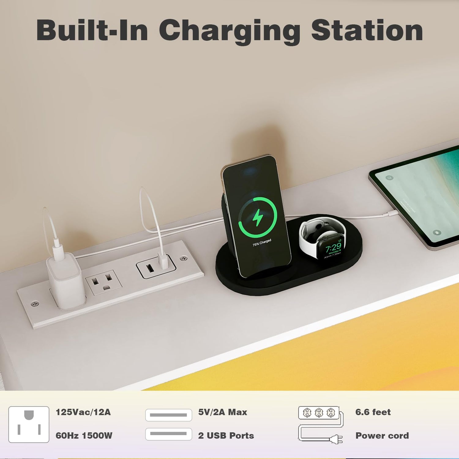 - Chest of Drawers with Charging Station -- No more hunting for a spot to charge devices! This bedroom dressers features a power outlet, which creates convenience for device charging. Led dresser has 2 AC outlets and 2 USB ports, so you can charge your laptop, mobile phone, table lamp, hairdryer, and other small appliances. Easy to use within your arms' reach.