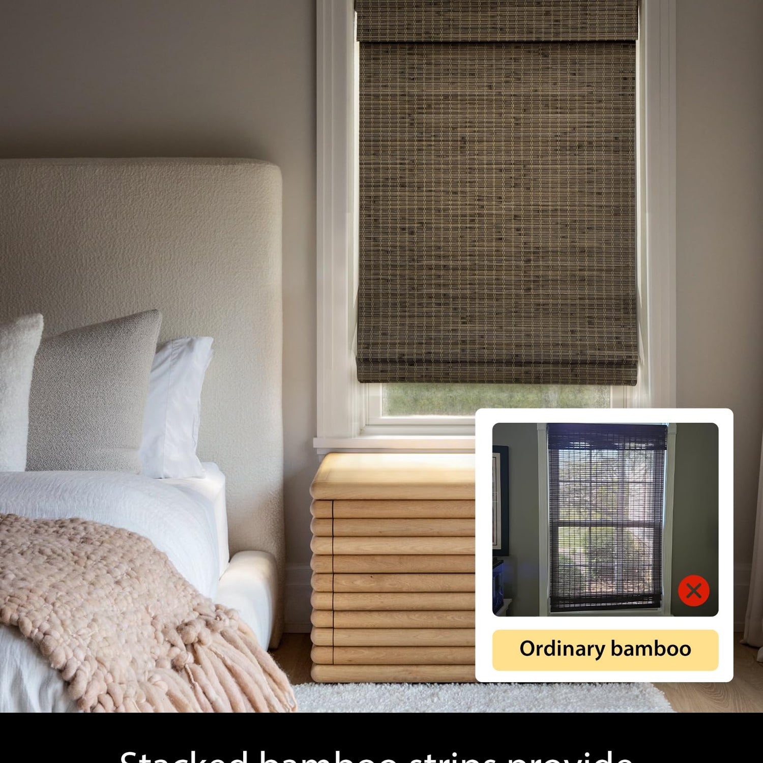 Details: 1 bamboo roman shades that blocks out sunlight and light