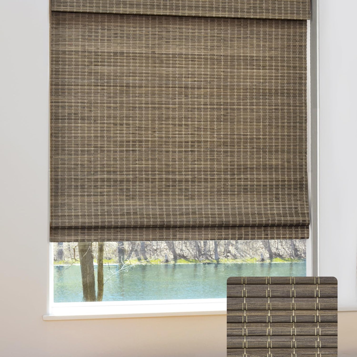 UNISHADES Cordless Bamboo Roman Shades for Windows, Size (26.5" W × 48" H) Colour (BDP-Driftwood)