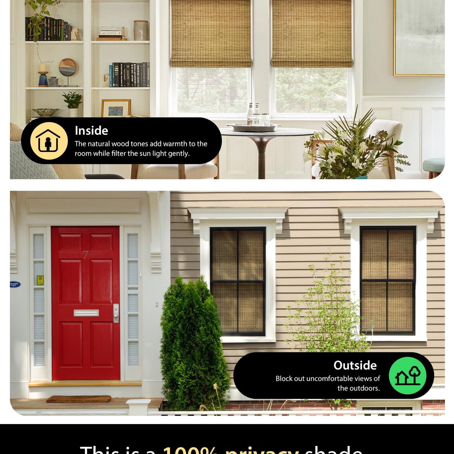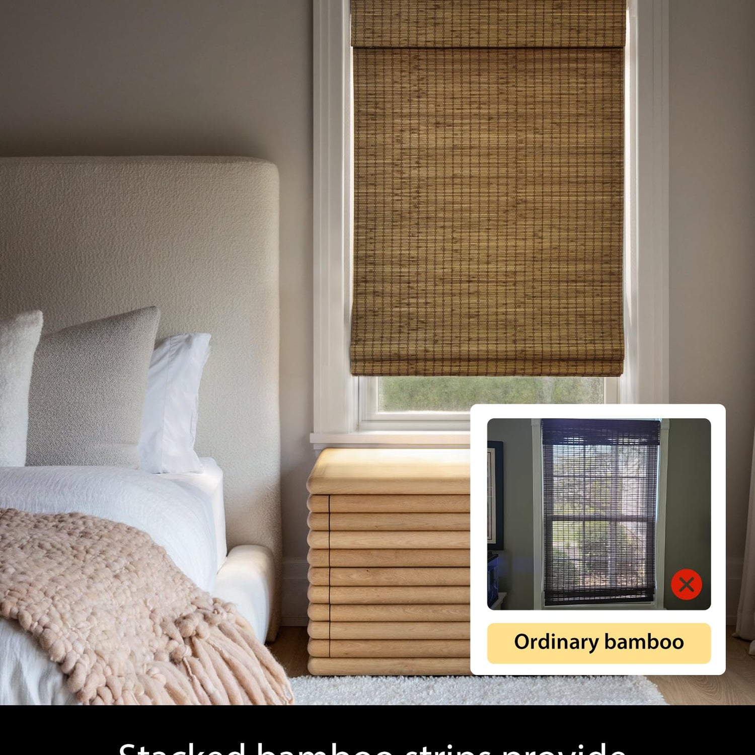 UNISHADES Cordless Bamboo Roman Shades for Windows, Size (30.5" W × 48" H) Colour (Eastfield Teak)