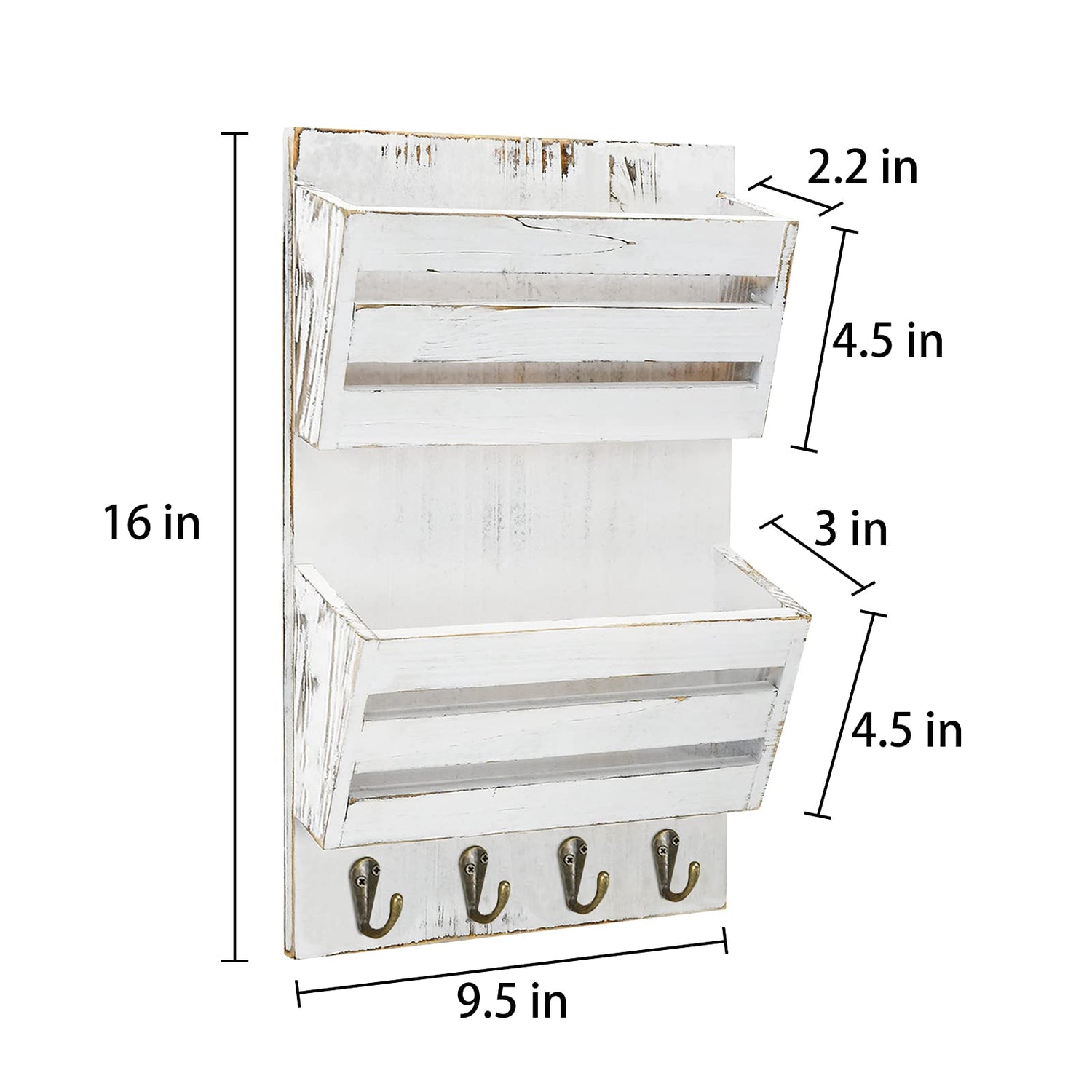- 【MAGIC WALL MAIL AND LETTER ORGANIZER 】Our key and mail holder for wall make the messy papers and files turn to an entirely organized look.Comes with 4 key rack, you will never miss the keys again! Size: 10"(L) x 3.46"(D) x 16.14"(H). The decorative mail holder with key hooks helps get your family out the door quickly to work and school. A handy place for leashes, ID lanyards, hats and sunglasses, it also has a floating shelf for knick-knacks