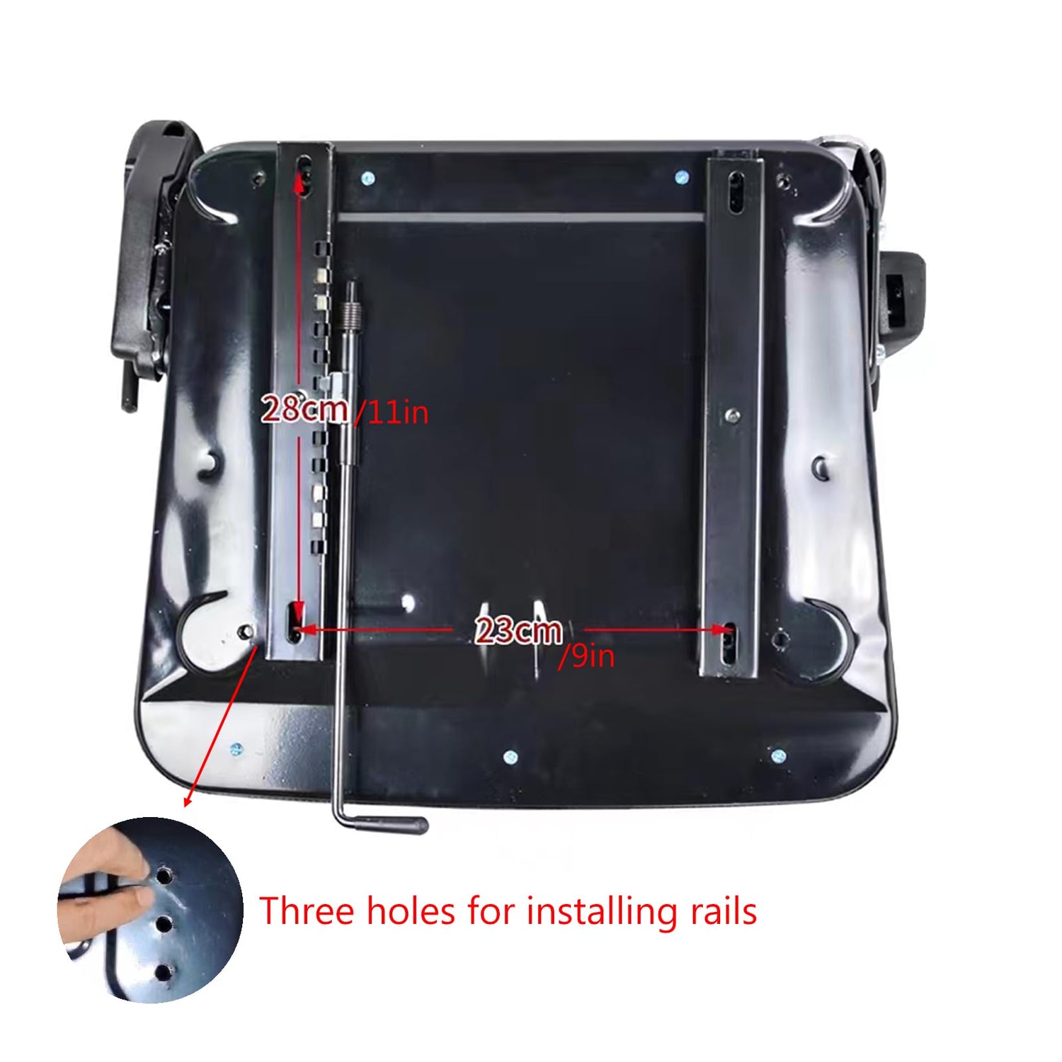 • 【Vehicle Fitment】This universal mower seat fit most mechanical seats, such as forklifts, dozers, aerial lifts, floor scrubbers, riding mowers, tractors, excavators, and trenchers. The sliding rail on the bottom enables the forward and back movement within 6'',allowing your seat to move with the forklift. Boost your work efficiency