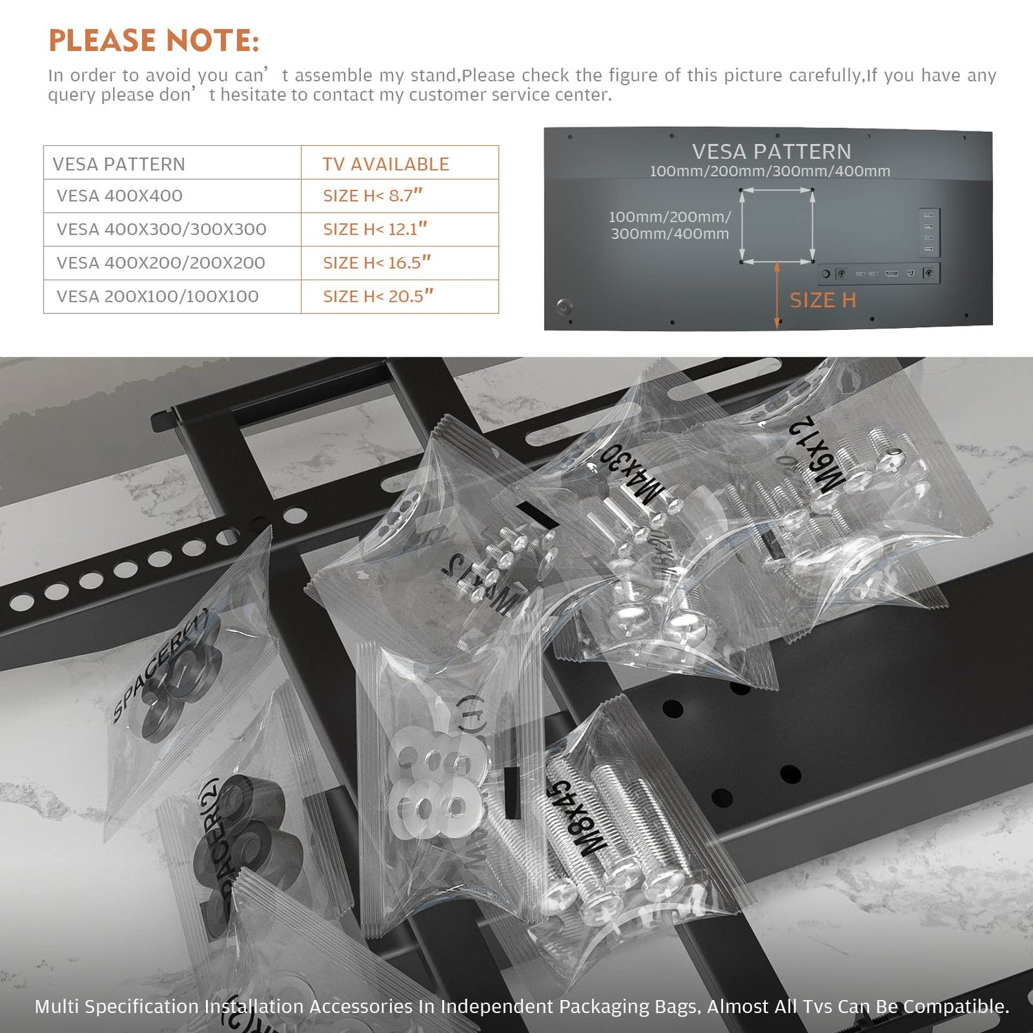 - EASY INSTALLATION☞Universal TV stand/base tabletop stand to mount your TV and AV components on an entertainment center or a desk/table. Our product comes with an easy to use instruction manual for quick and easy installation with fittings provided. Install the TV stand without any hassle