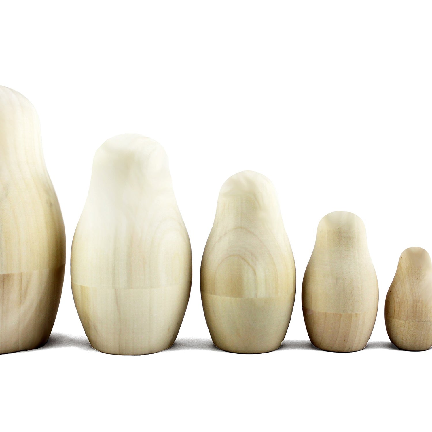 - Unpainted Nesting Dolls made from high-quality solid linden or aspen wood
