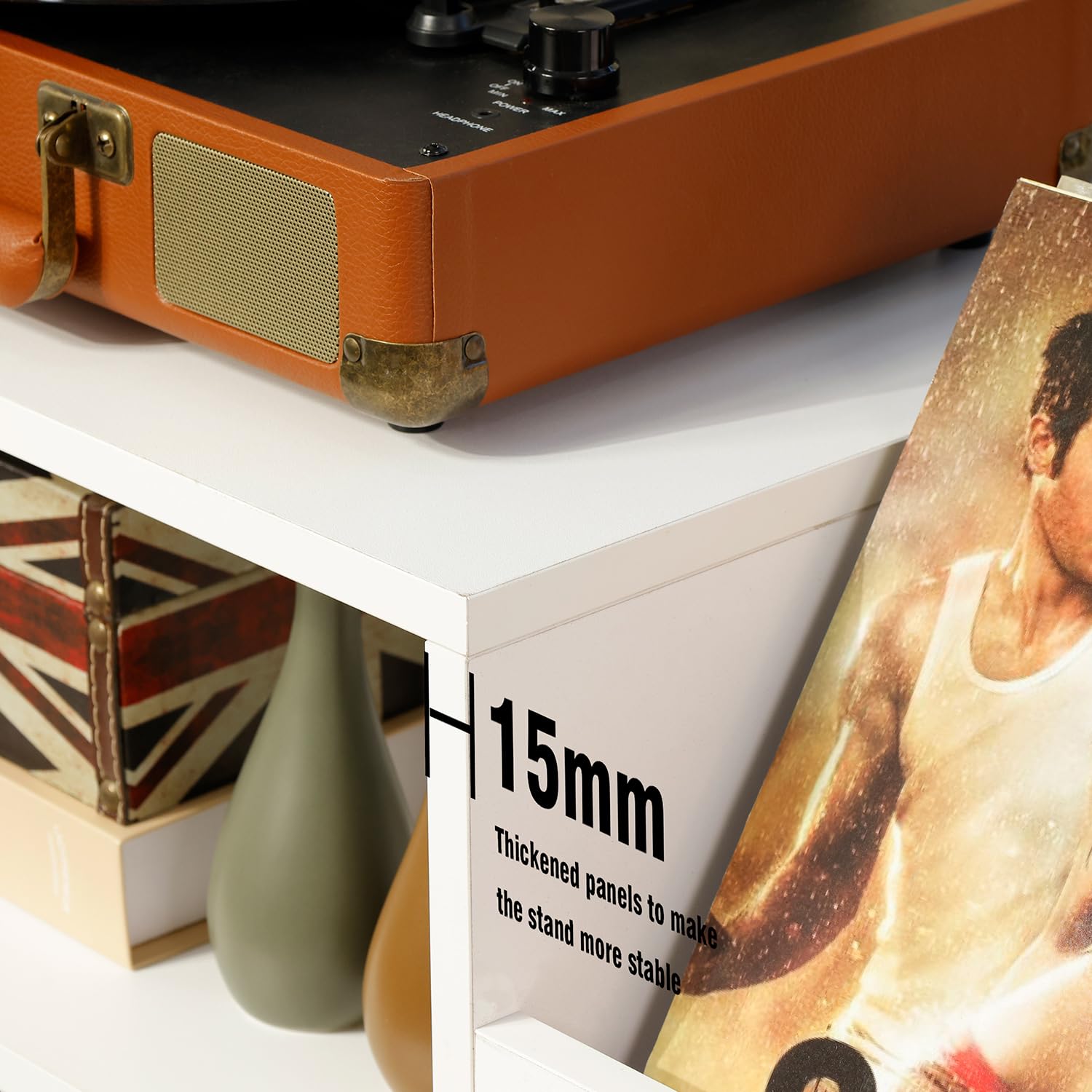 UODERS Record Player Stand, Large Record Player Table Cabinet with Open Vinyl Storage and Display Shelf Holds up to 350 Albums, Mid Century Wood Turntable for Living Room, Bedroom (White)