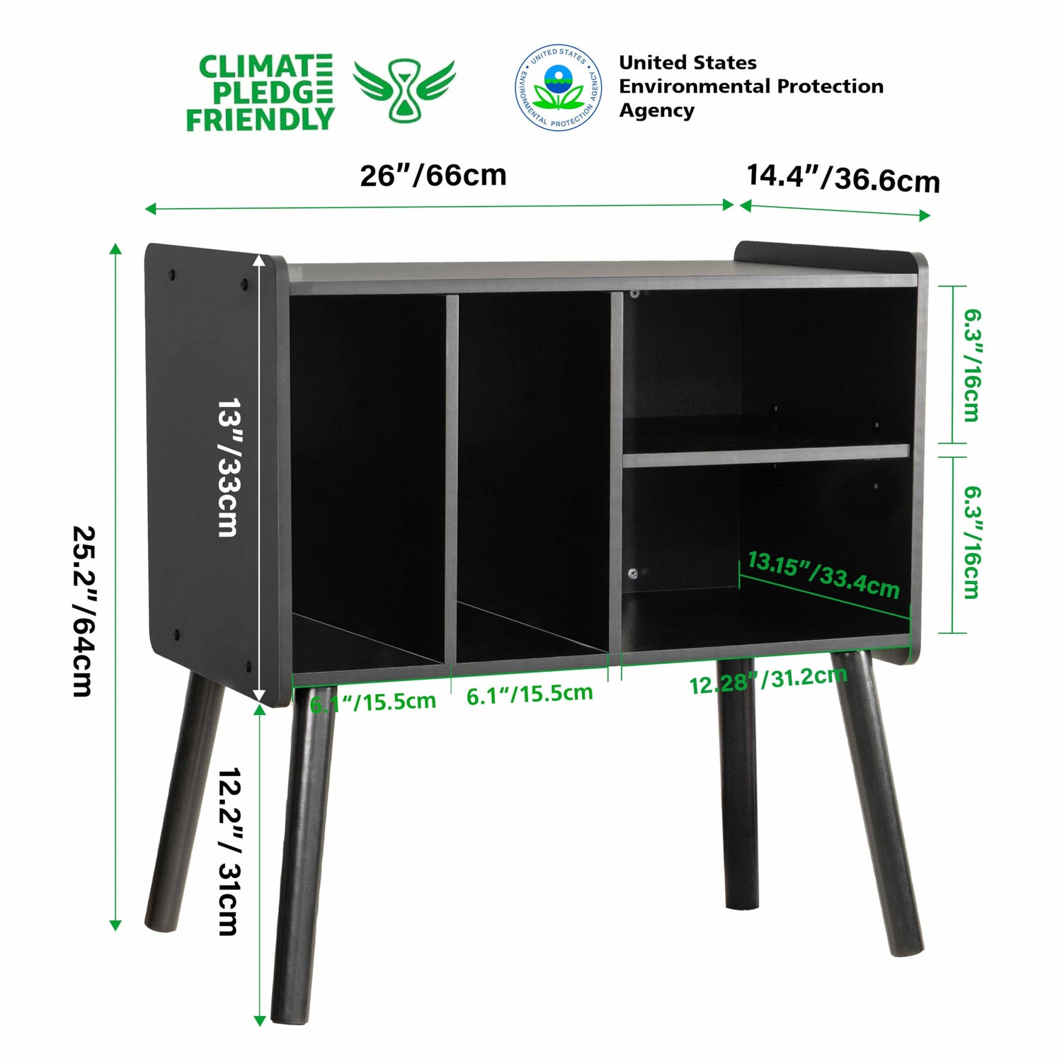 - [Sturdy Support, Unrivaled Quality] Made from premium particleboard with sturdy solid wood legs, this vinyl record player stand is designed for long-lasting use. It holds up to 100 lbs, ensuring your record player and albums are stored securely. Perfect for protecting your valuable collection!