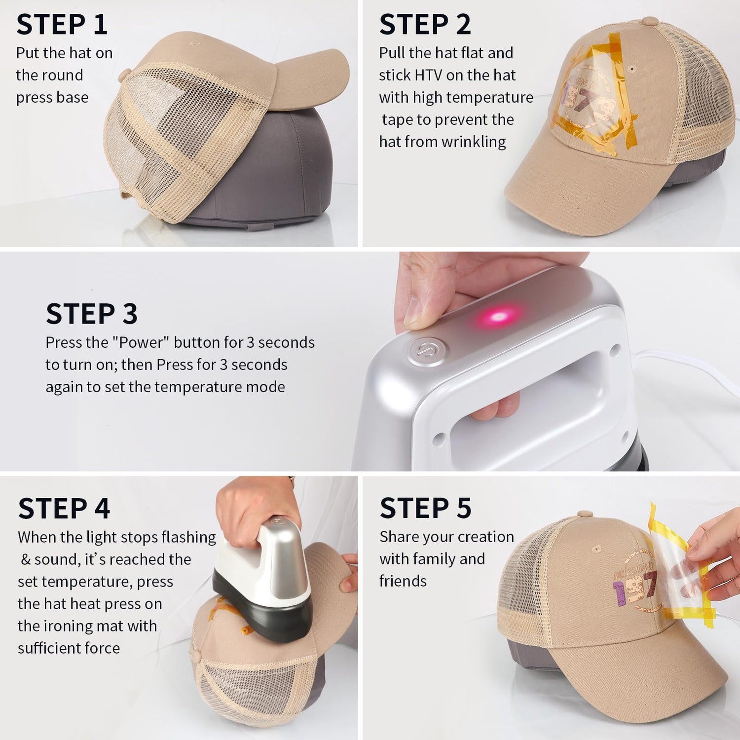 - Portable & Sleek Design: The compact and sleek design makes the hat press heat machine for caps perfect for on-the-go use. Whether in a studio or traveling, it is easy to carry and meets all your hat pressing needs